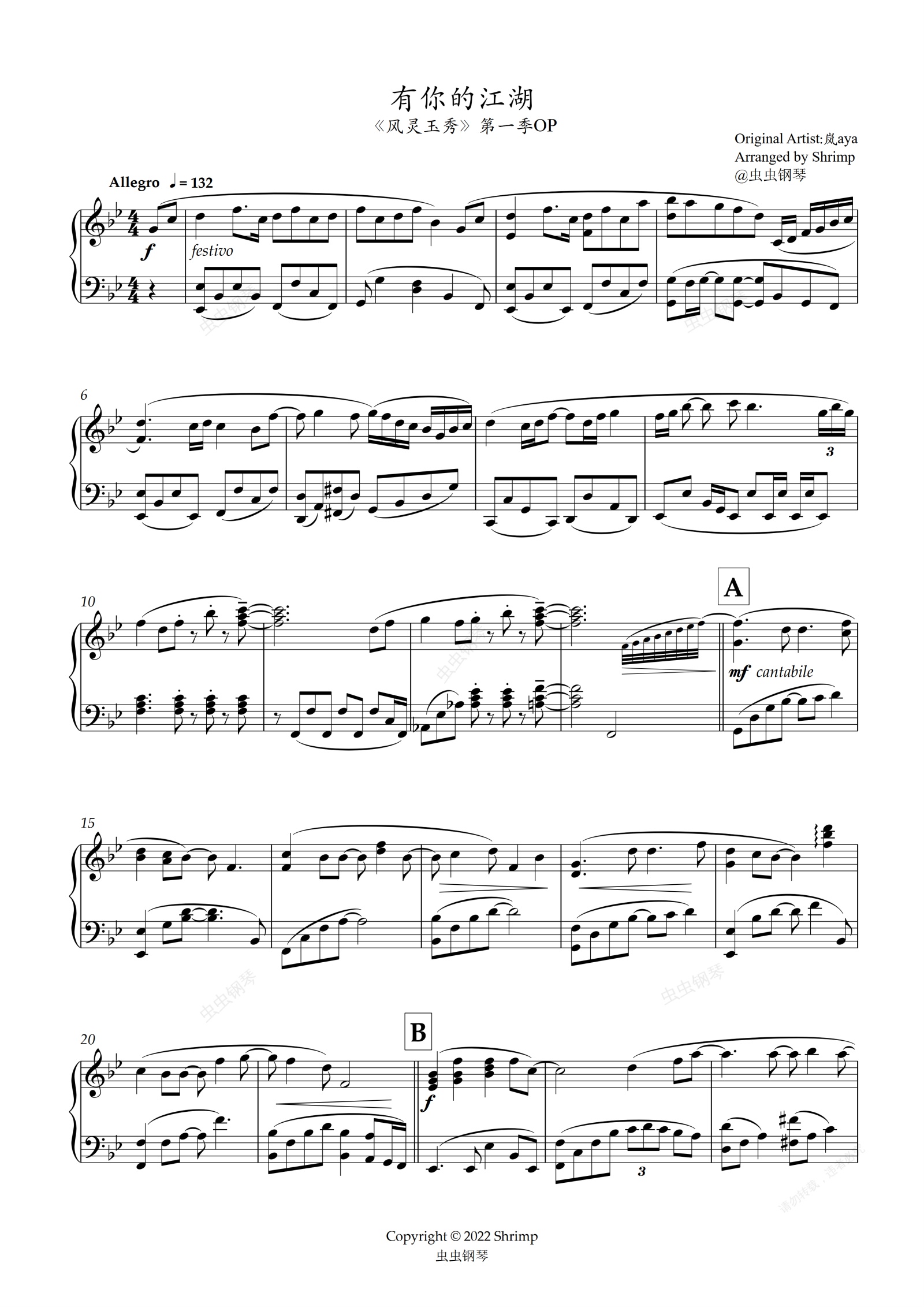 钢琴谱:有你的江湖 《风灵玉秀》第一季OP