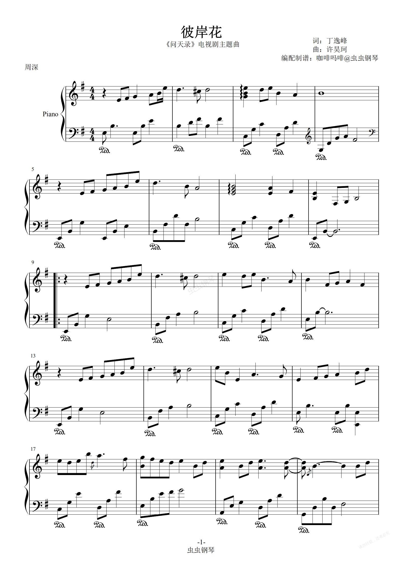 钢琴谱:彼岸花-《问天录》主题曲 周深 G调独奏谱