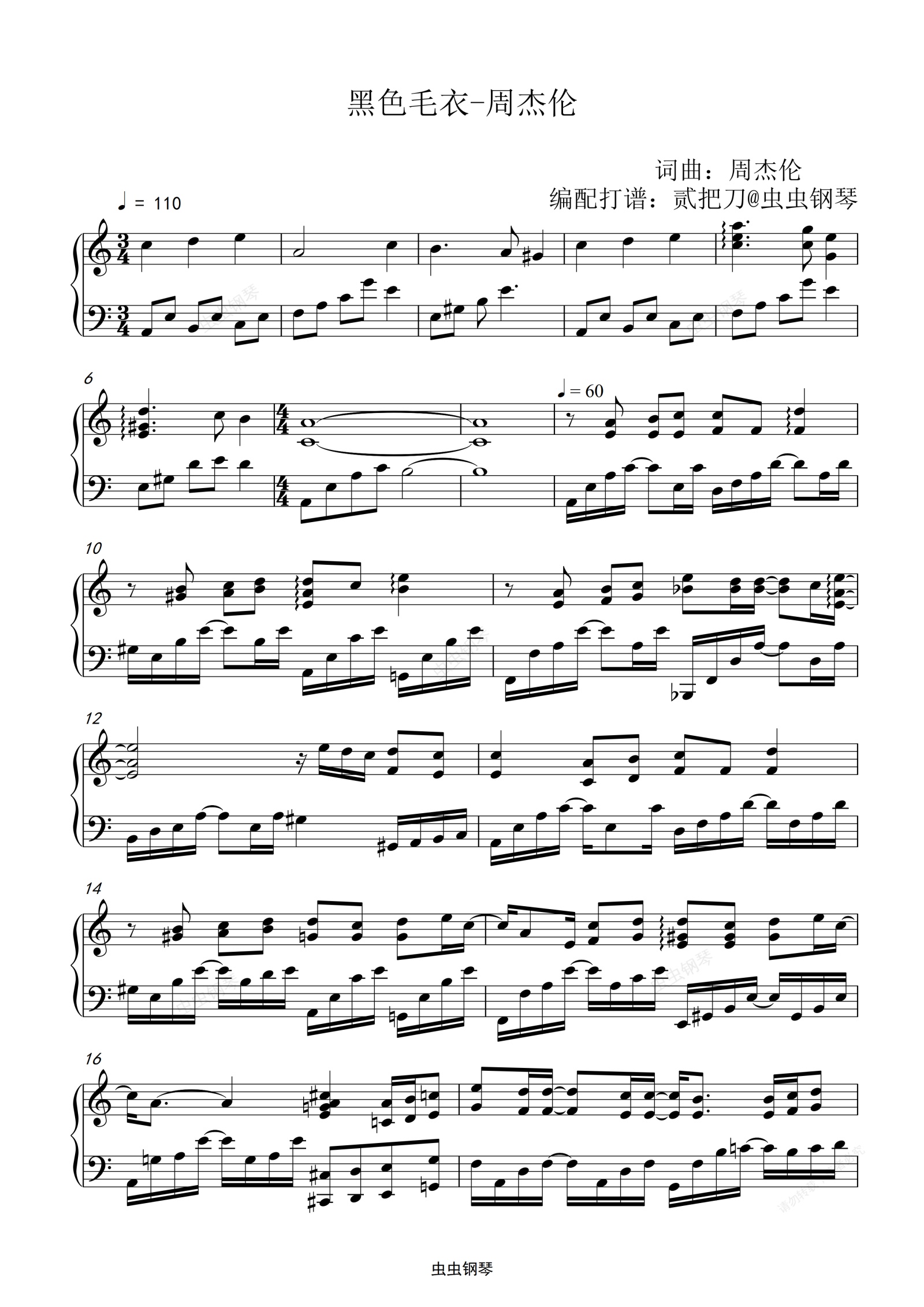 钢琴谱:黑色毛衣超高还原独奏