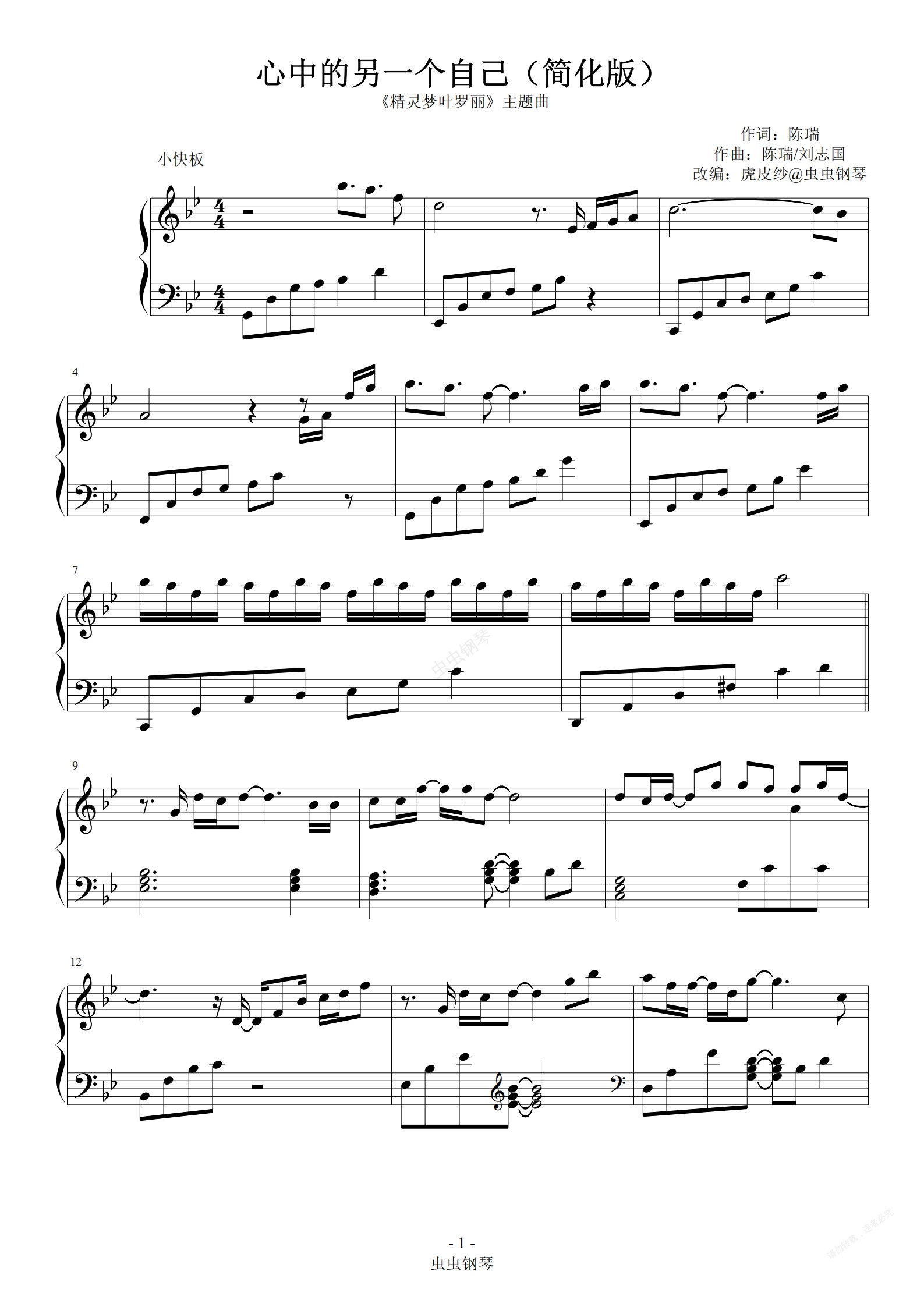 钢琴谱:心中的另一个自己 精灵梦叶罗丽主题歌