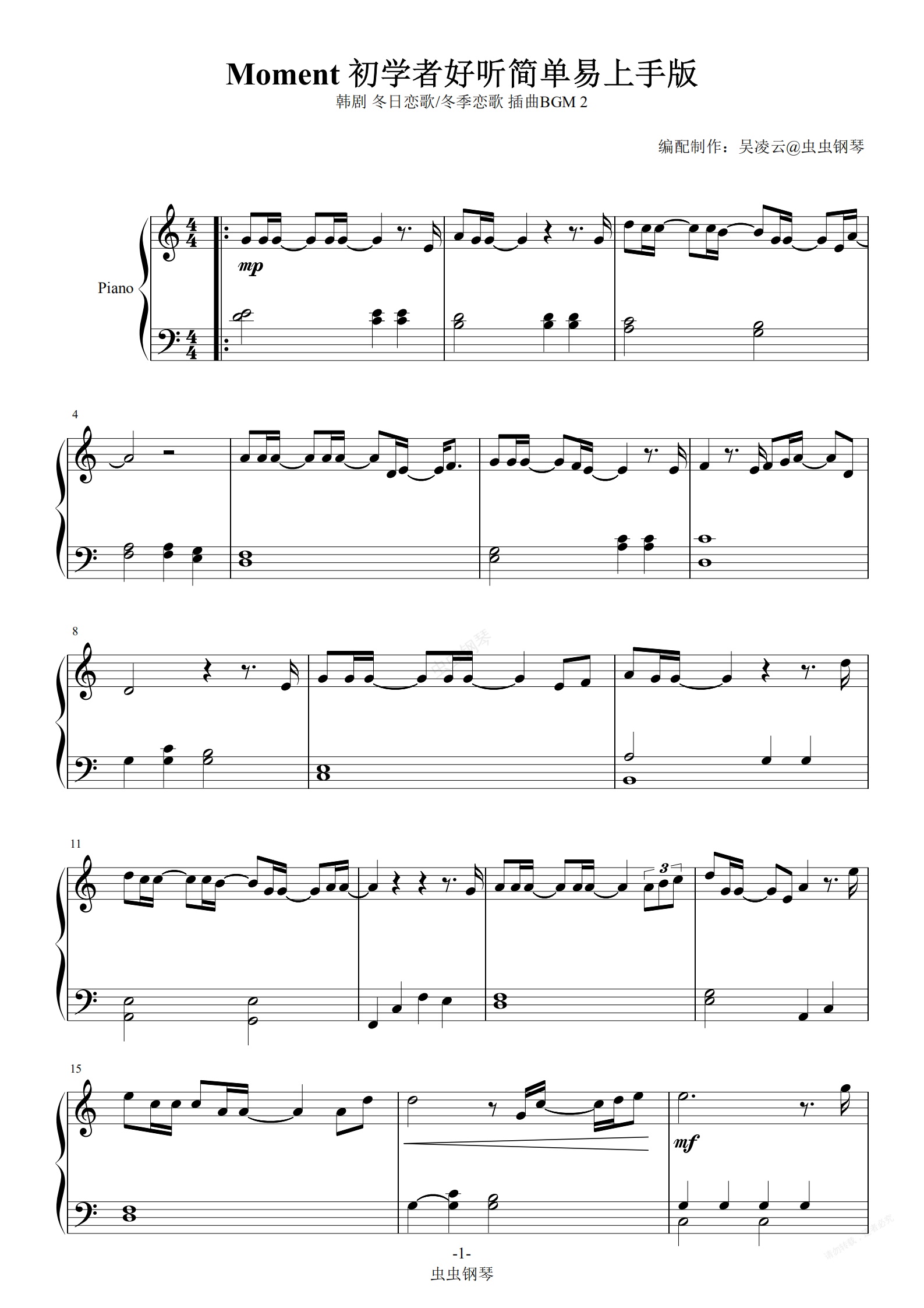 钢琴谱:Moment 韩剧 冬日恋歌/冬季恋歌 插曲BGM 初学者好听简单易上手版