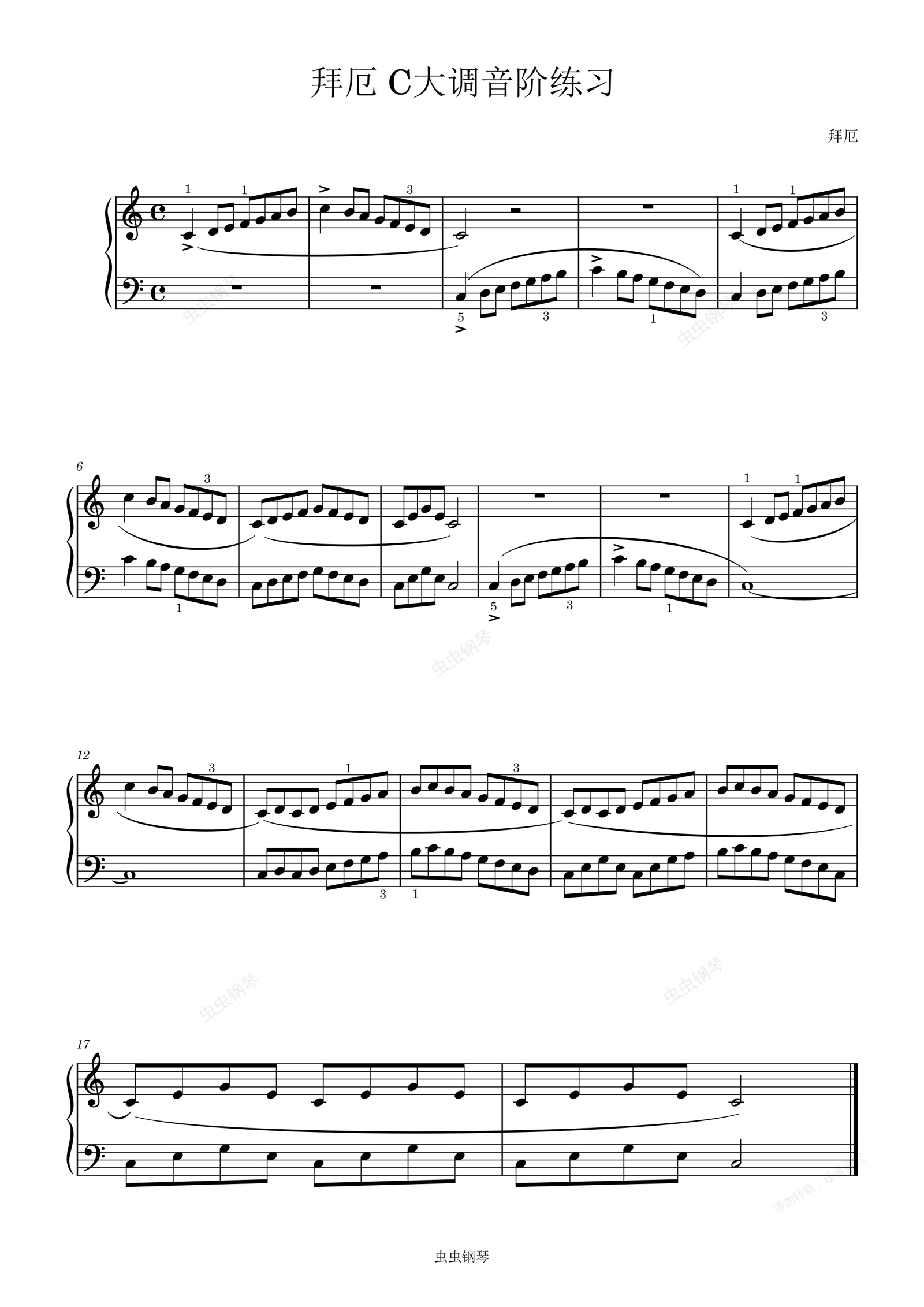 钢琴谱:拜厄 C大调音阶练习