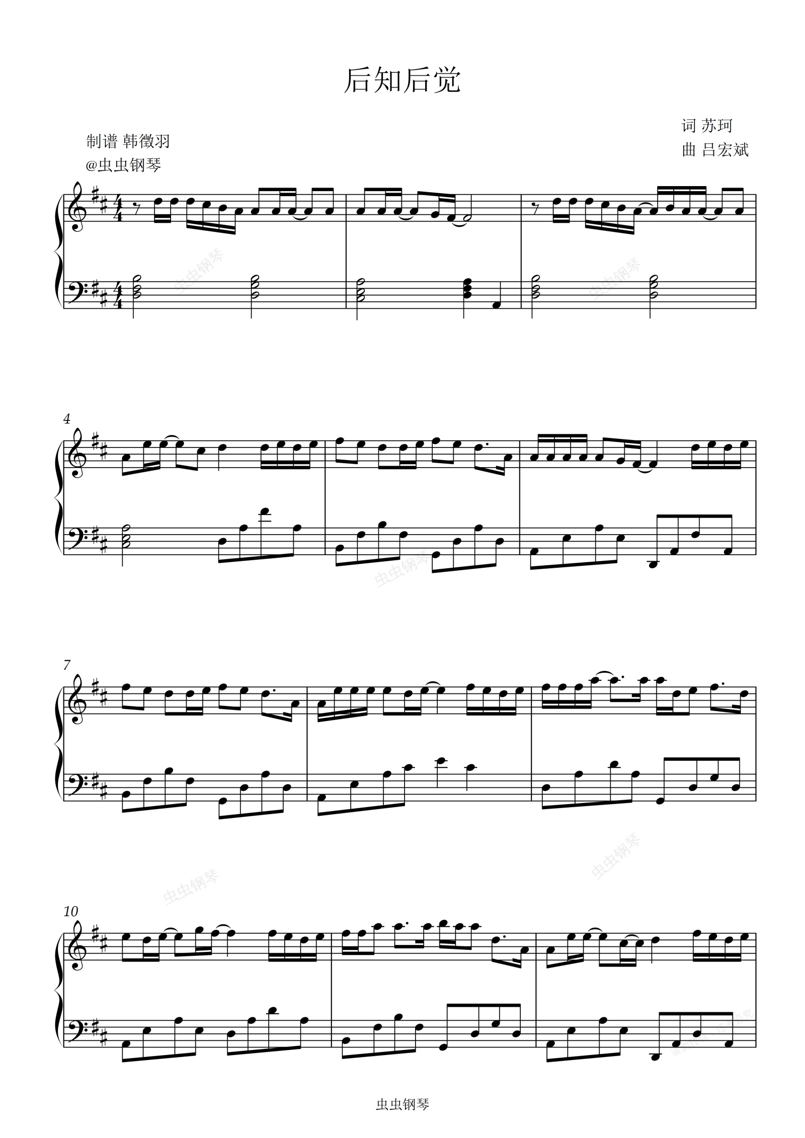 钢琴谱:后知后觉 林贝贝 D调简易版
