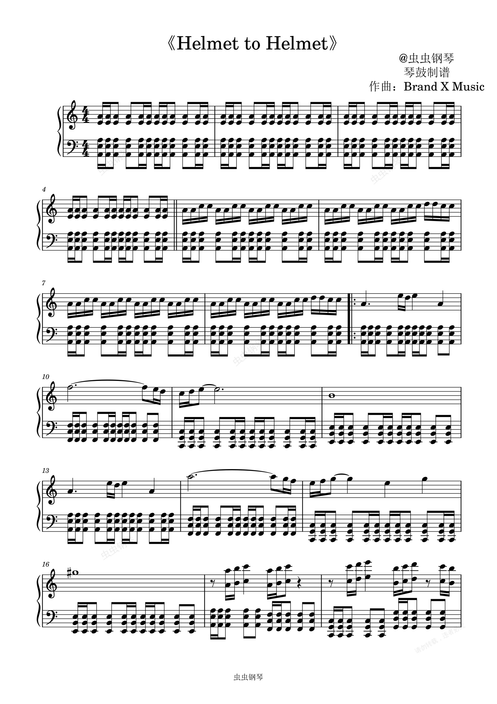 钢琴谱:《Helmet to Helmet》琴鼓制谱 史诗级BGM