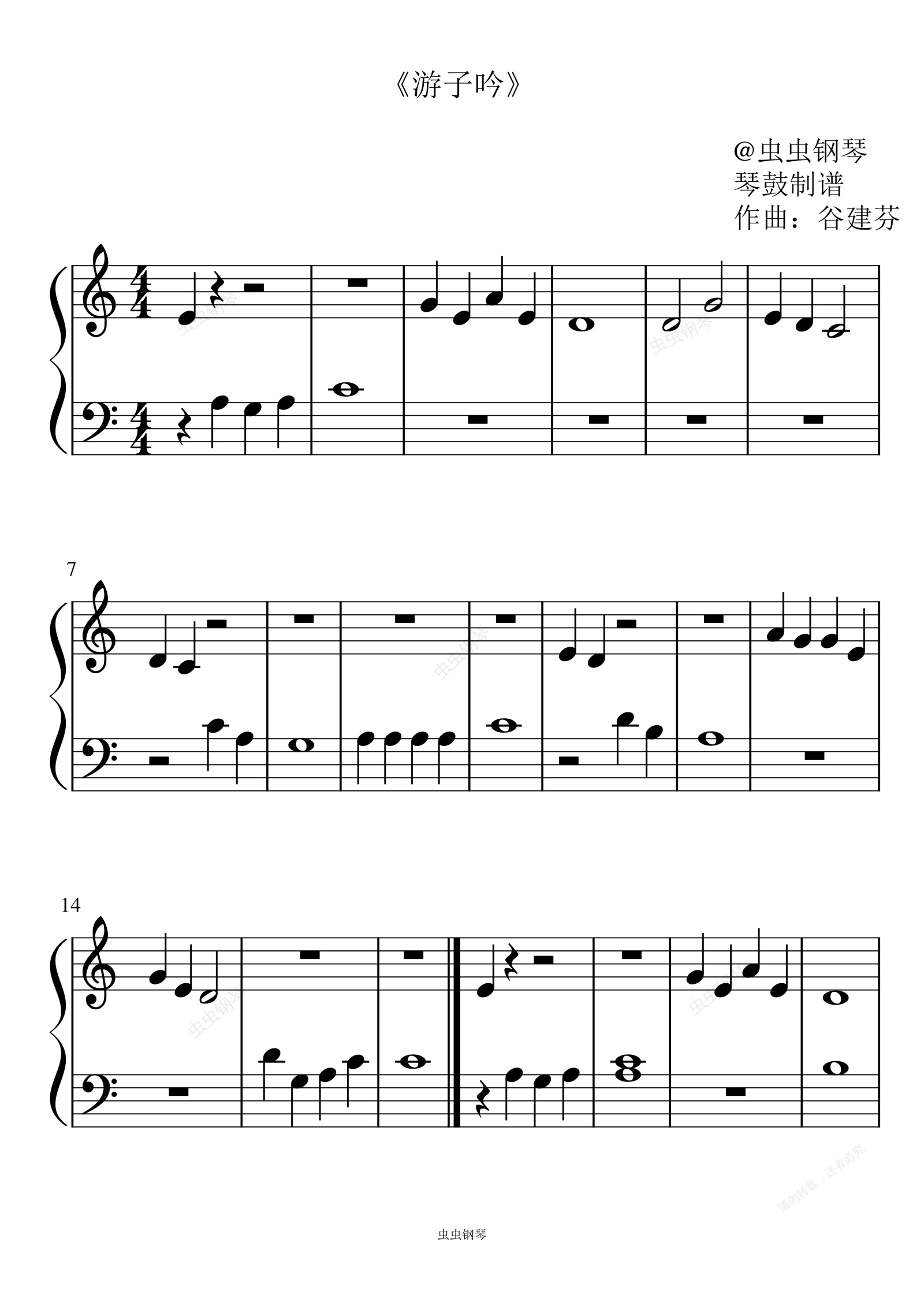 钢琴谱:《游子吟》幼儿版 小汤版 入门版 琴鼓制谱
