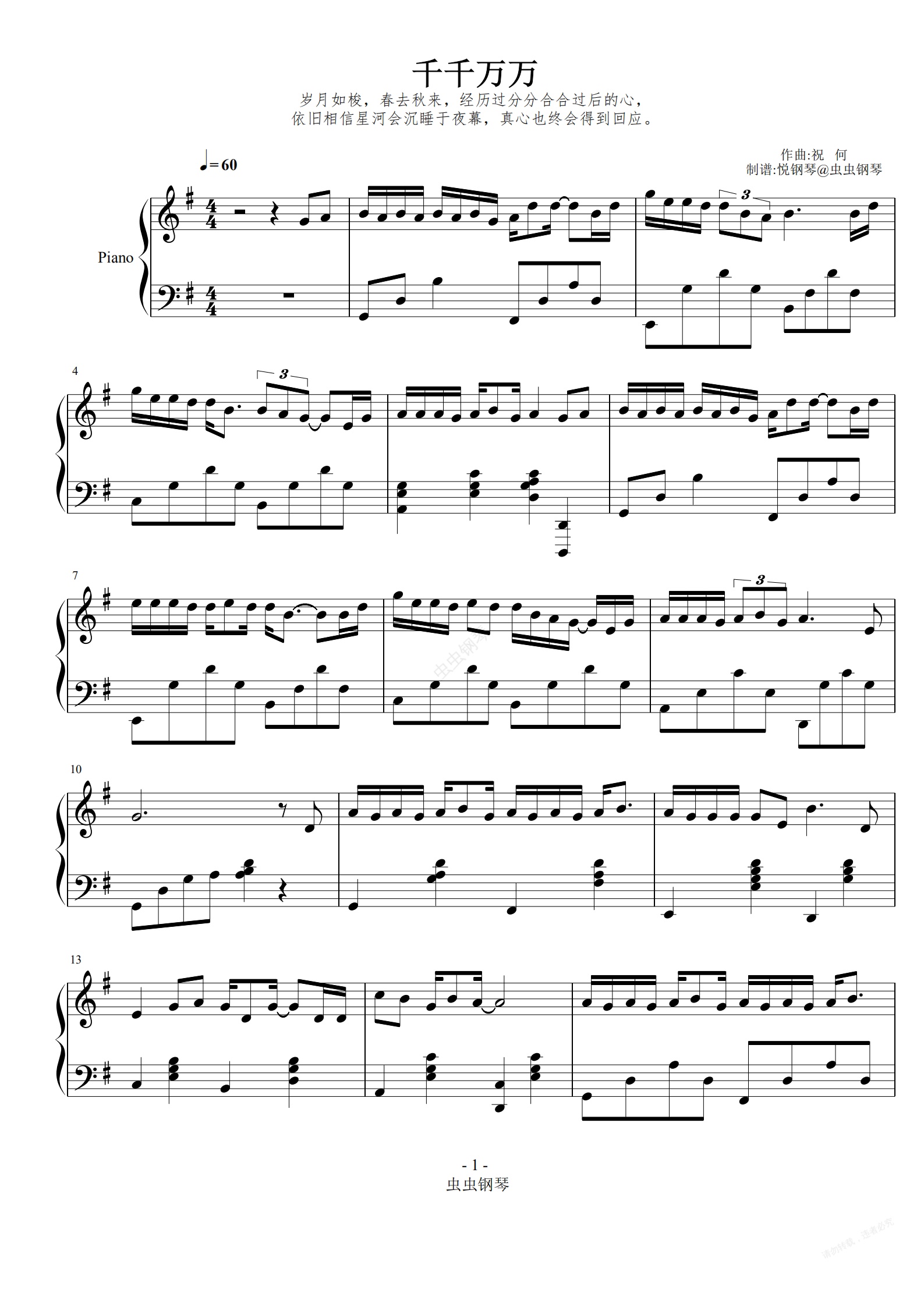 钢琴谱:千千万万(G调深情版)深海鱼子酱