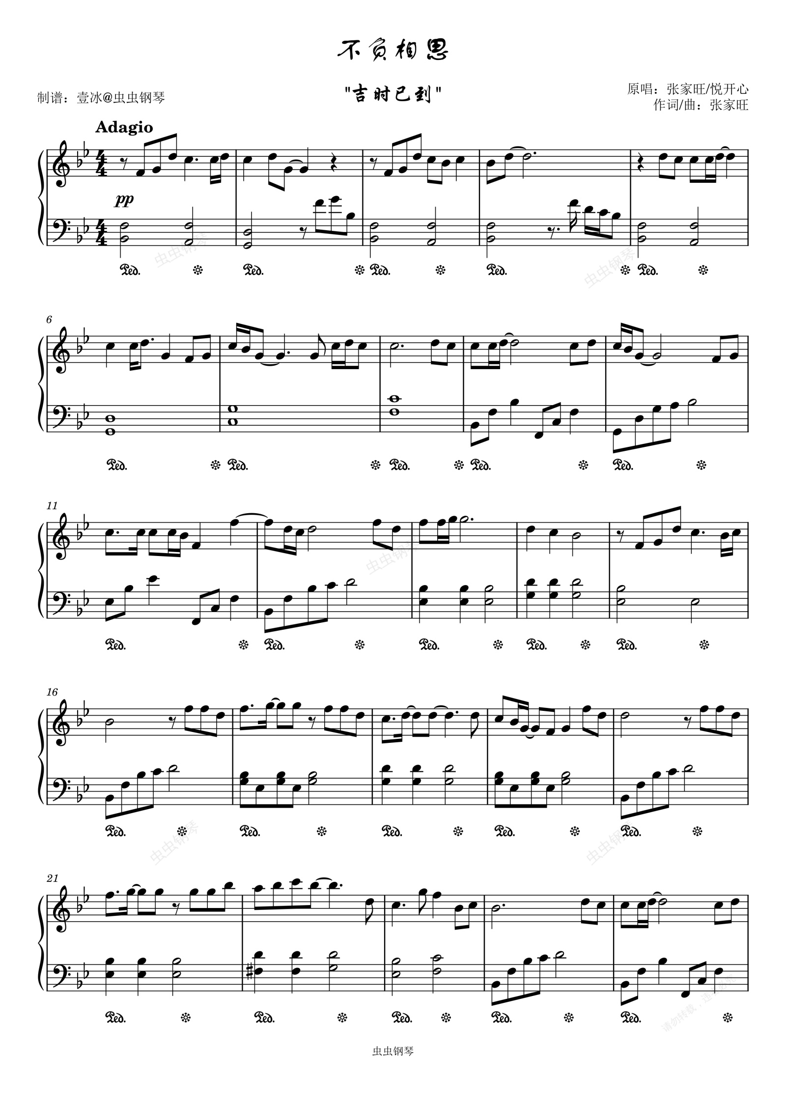 钢琴谱:不负相思//张家旺/悦开心-原调版