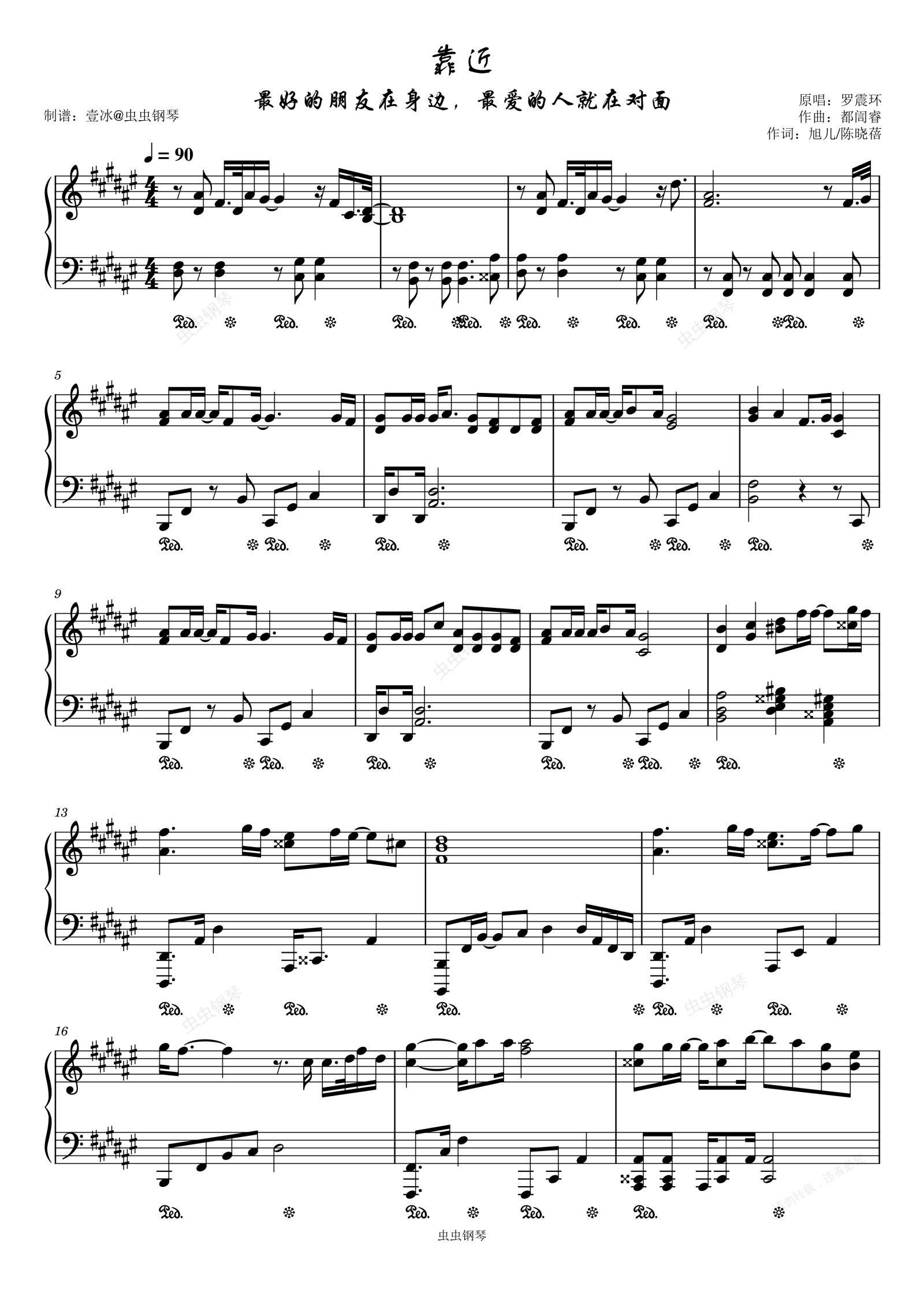 钢琴谱:靠近//最好的朋友在身边,最爱的人就在对面-原调