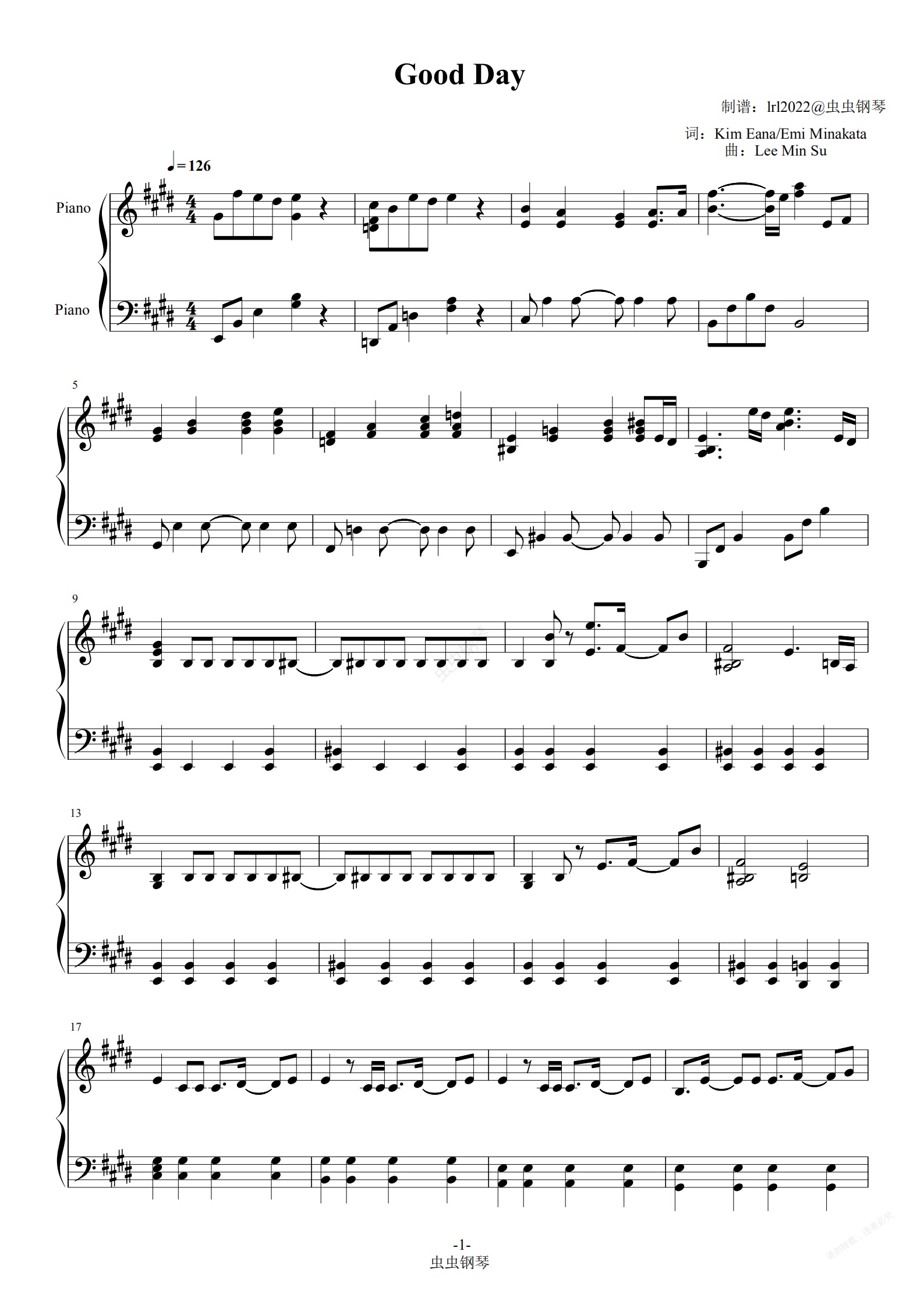 钢琴谱:Good Day-五线谱-简谱-钢琴谱-IU