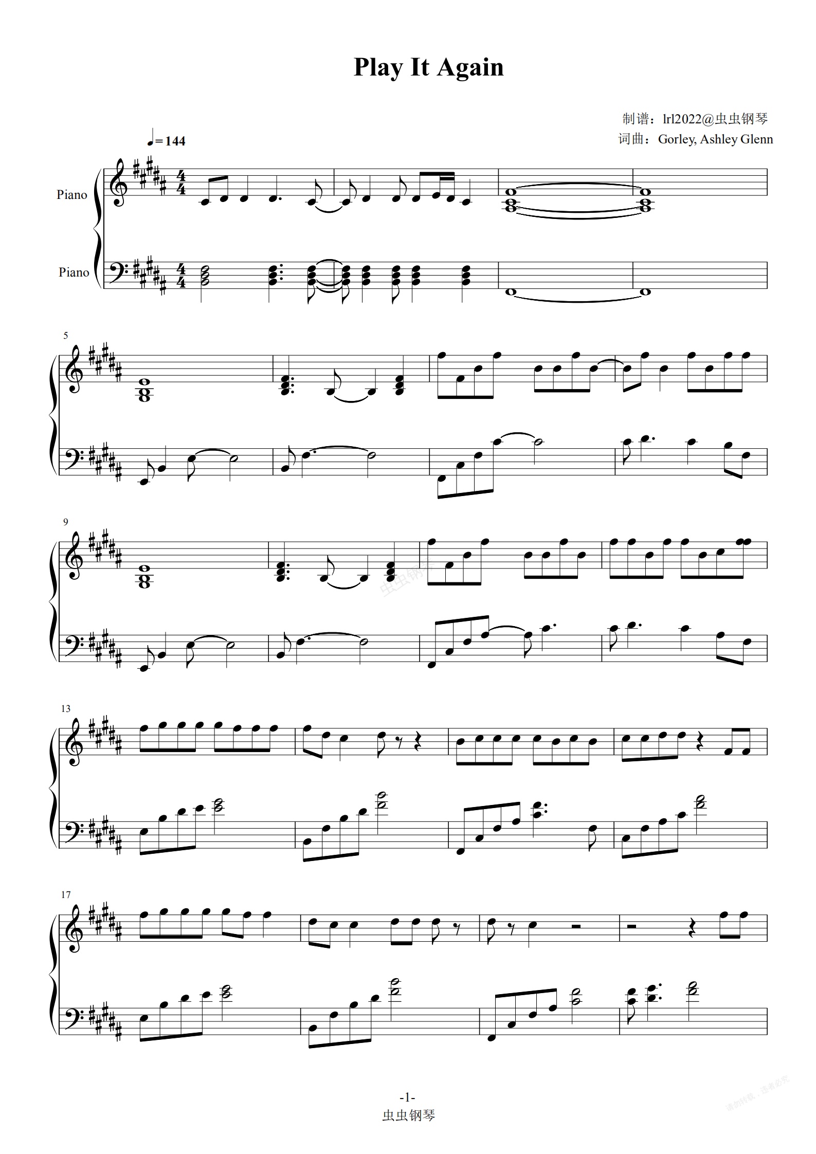 钢琴谱:Play It Again-五线谱-简谱-钢琴谱-Luke Bryan