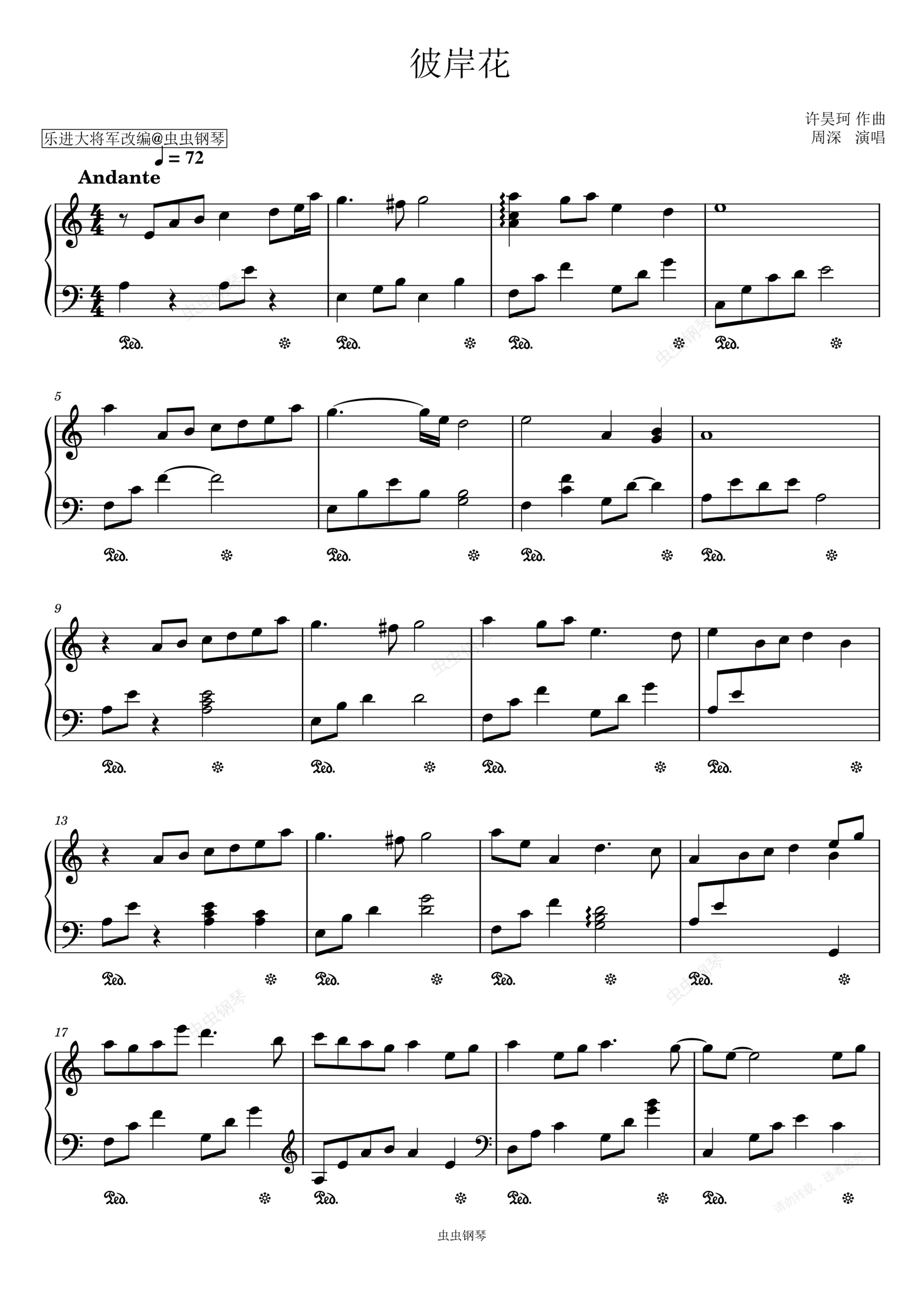 钢琴谱:周深演唱《彼岸花》 C调简单版,电视剧《问天录》的主题曲