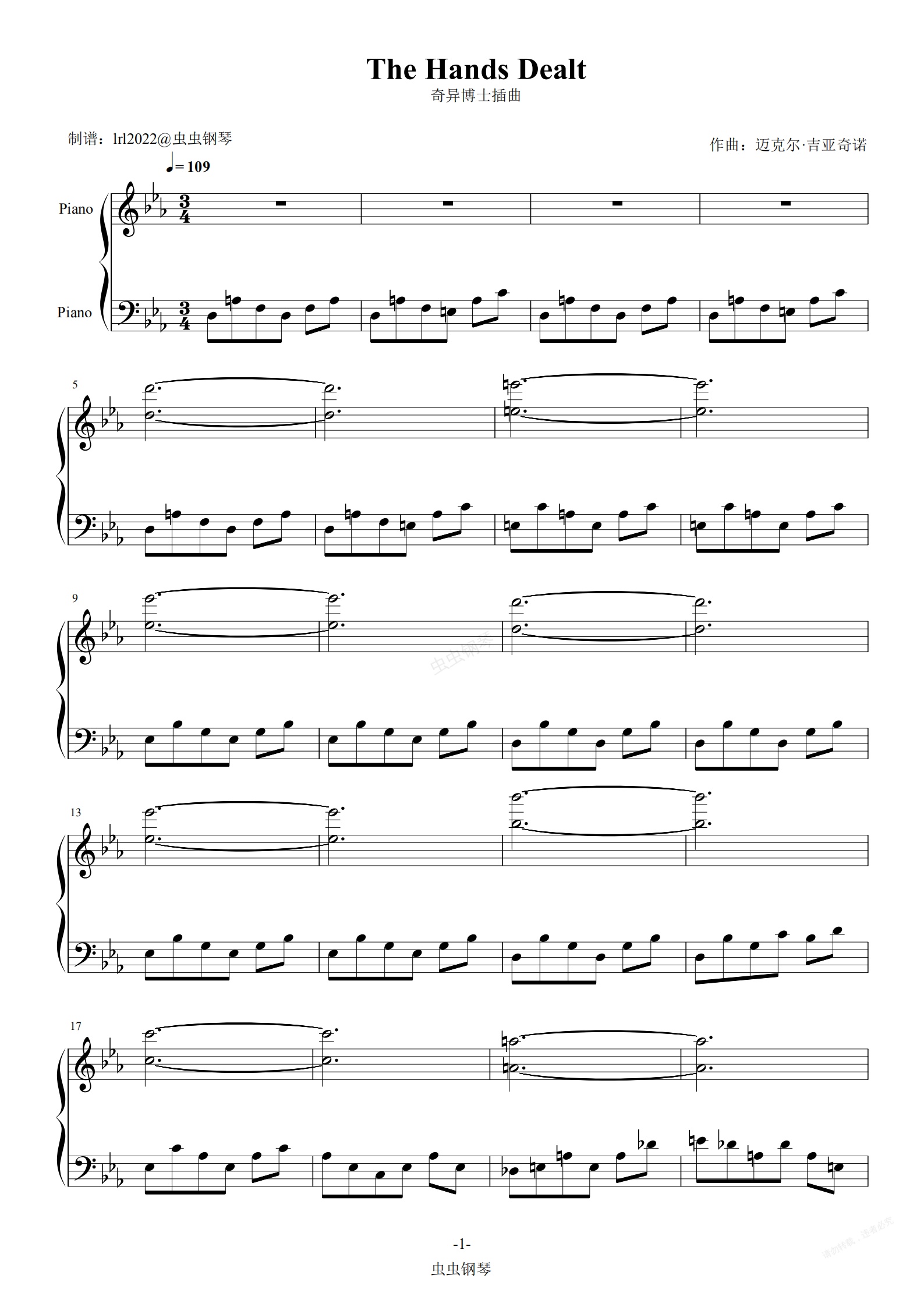 钢琴谱:The Hands Dealt-电影《奇异博士》插曲-五线谱-简谱-钢琴谱