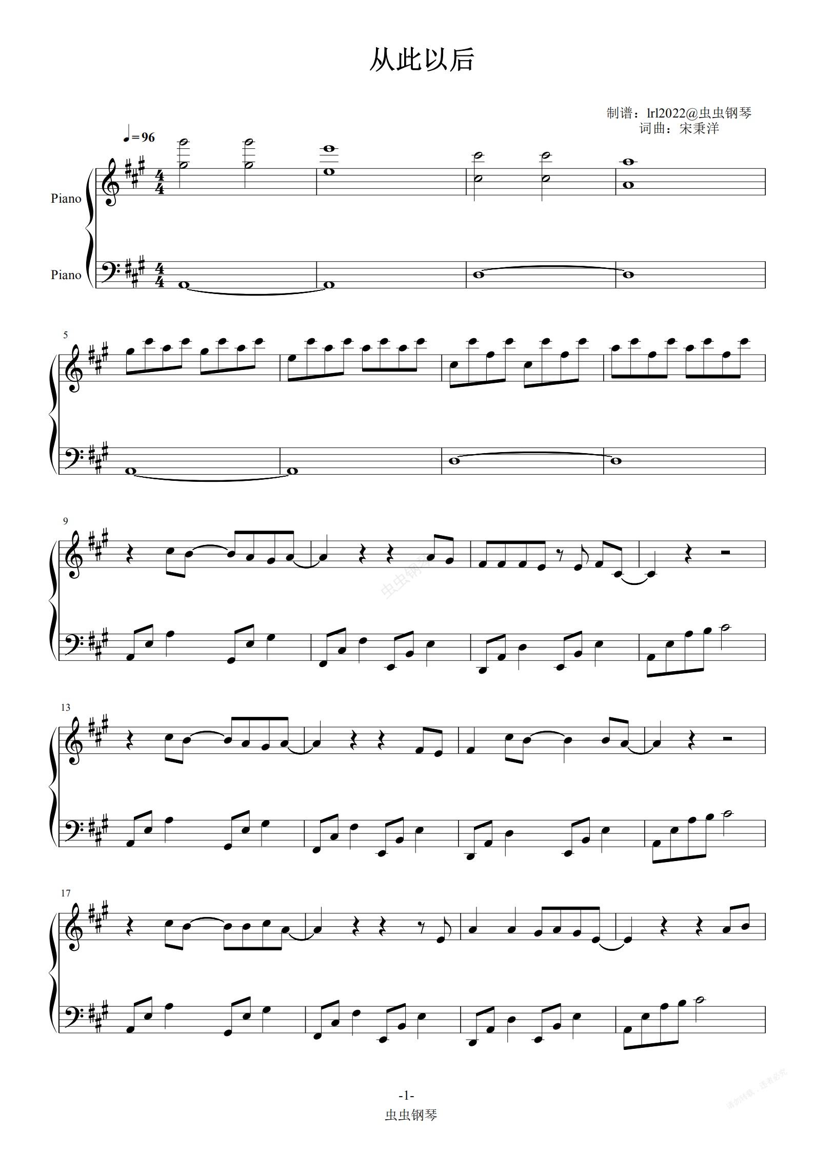 钢琴谱:从此以后-夏有乔木雅望天堂OST-五线谱-简谱-钢琴谱-吴亦凡