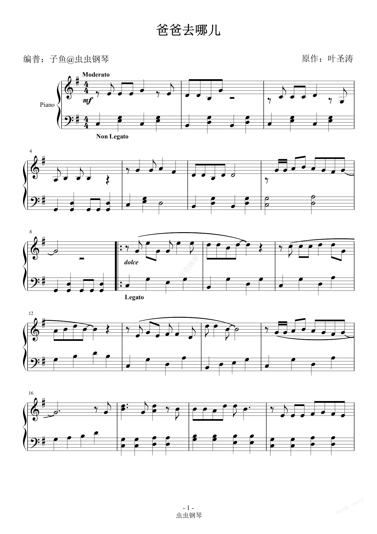 您的位置: 首页 > 钢琴谱库 > 爸爸去哪儿钢琴谱-叶圣涛