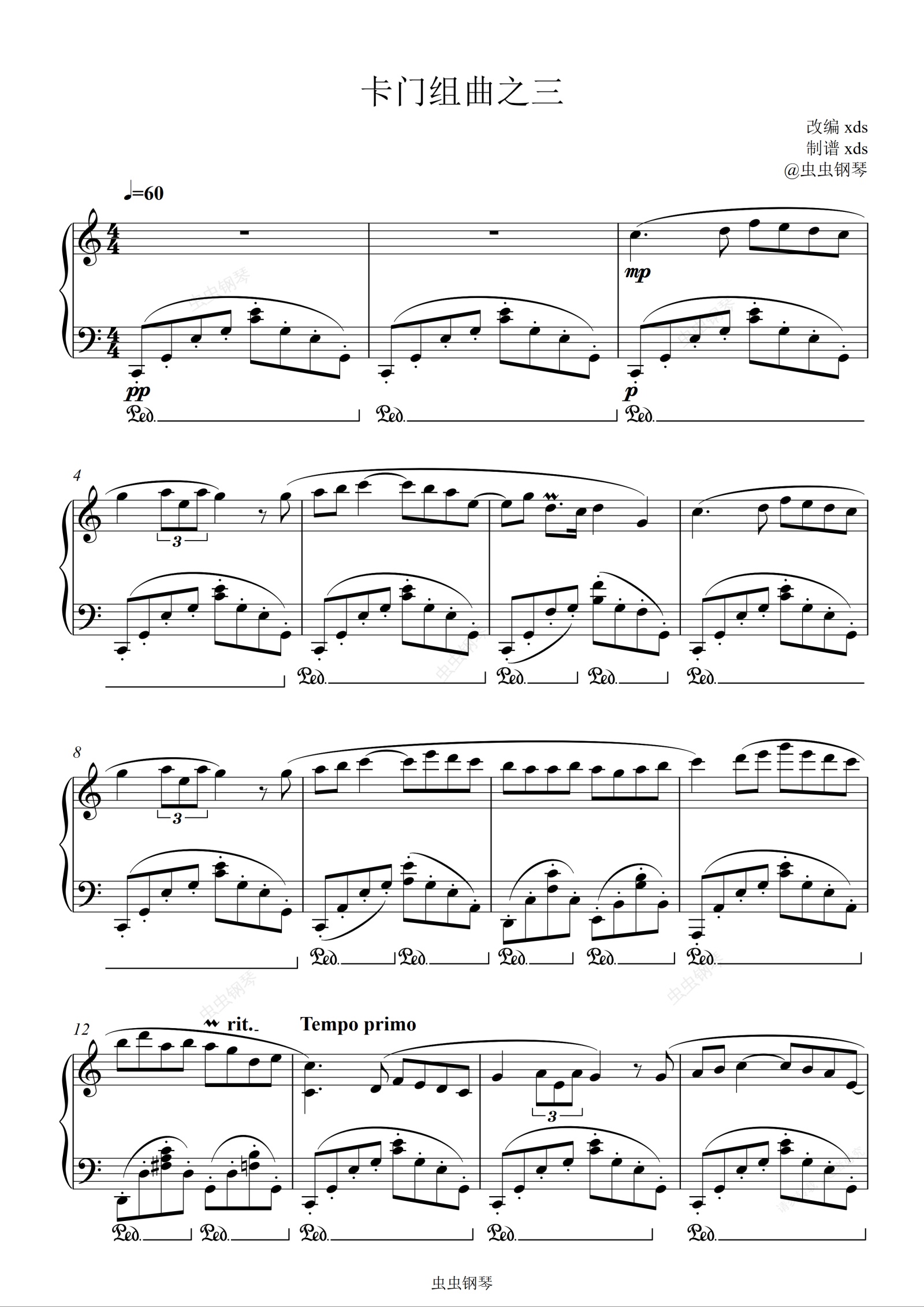 钢琴谱:《卡门组曲Ⅲ间奏》Key-C版本