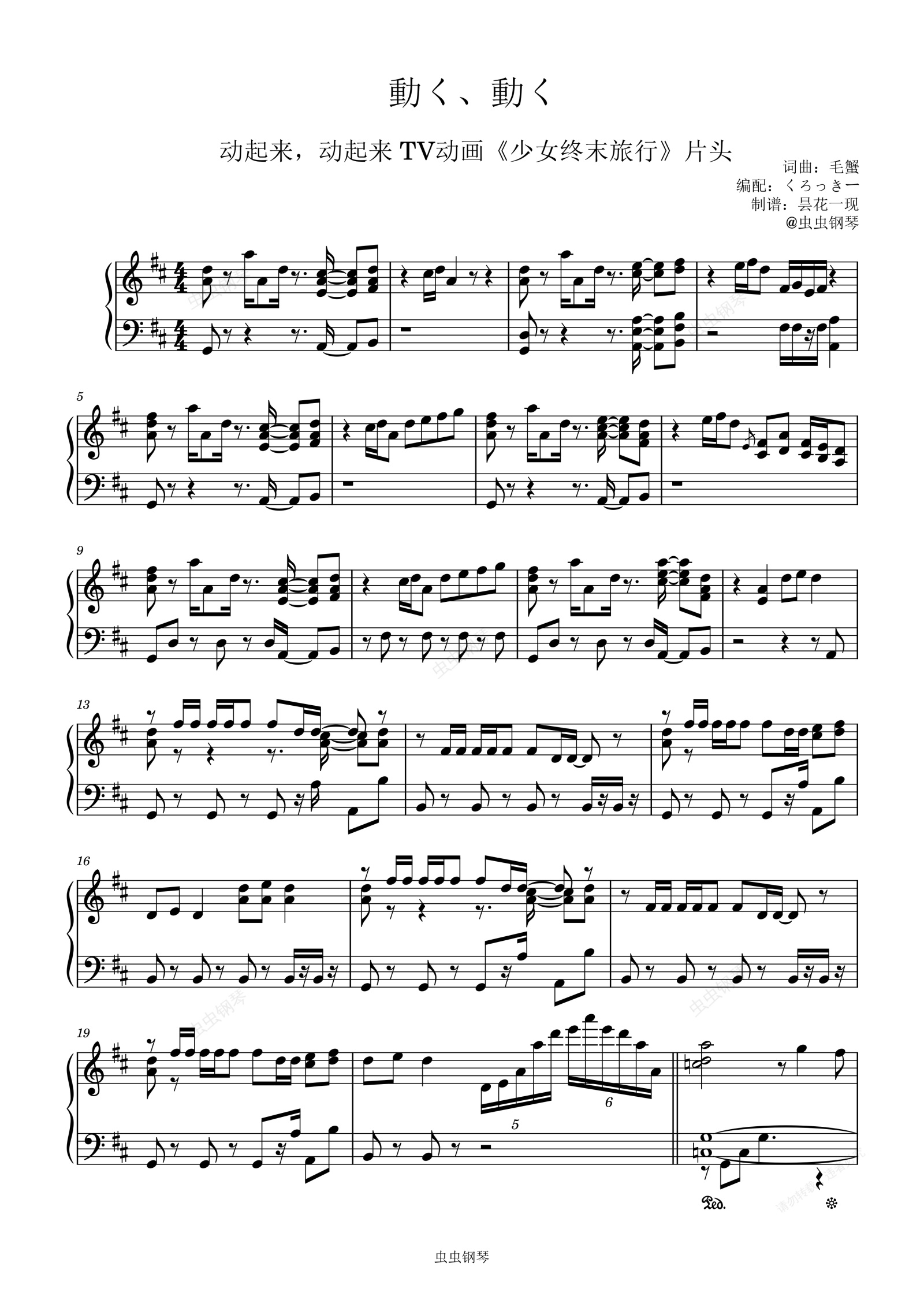 钢琴谱:動く、動く 《少女终末旅行》片头