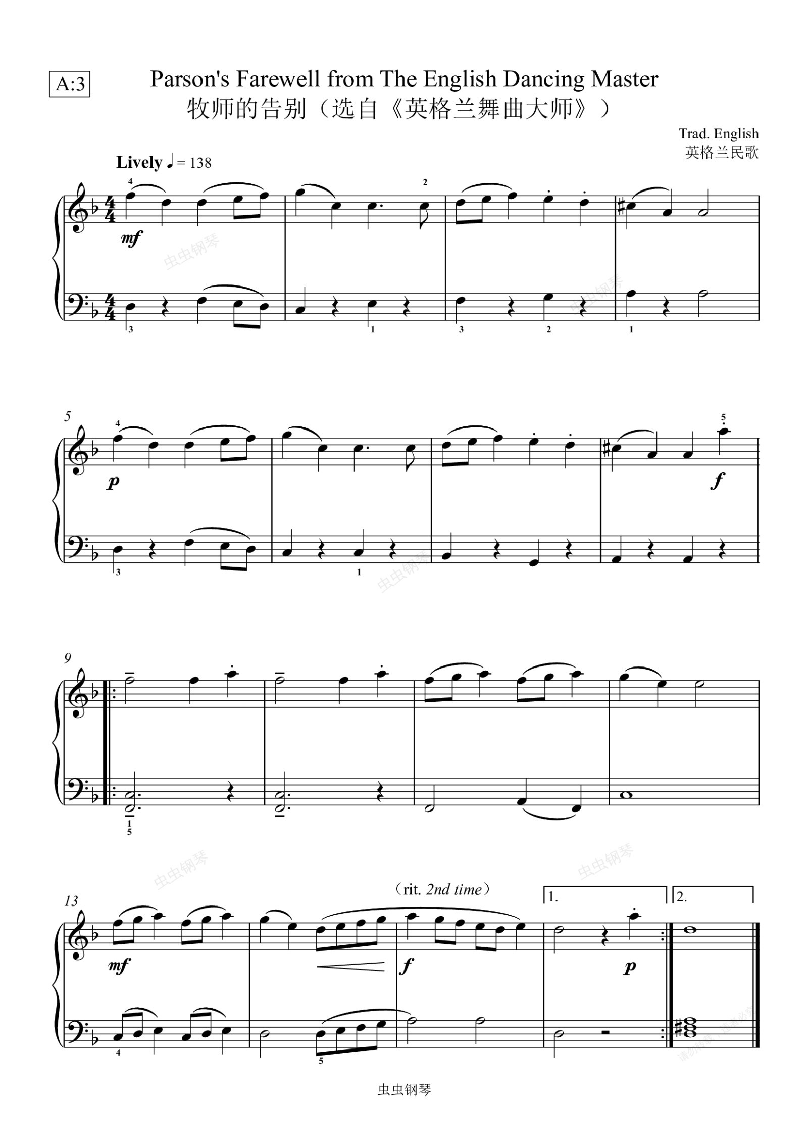 钢琴谱:3. 牧师的告别 英格兰民歌