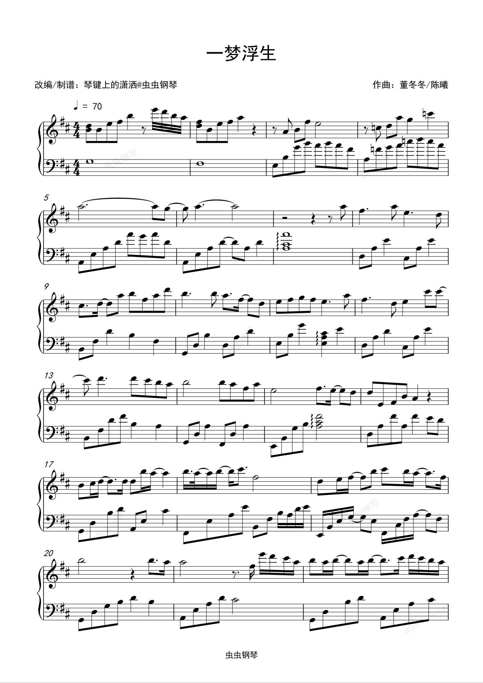 钢琴谱:《一梦浮生》-汪苏泷-完美b小调独奏