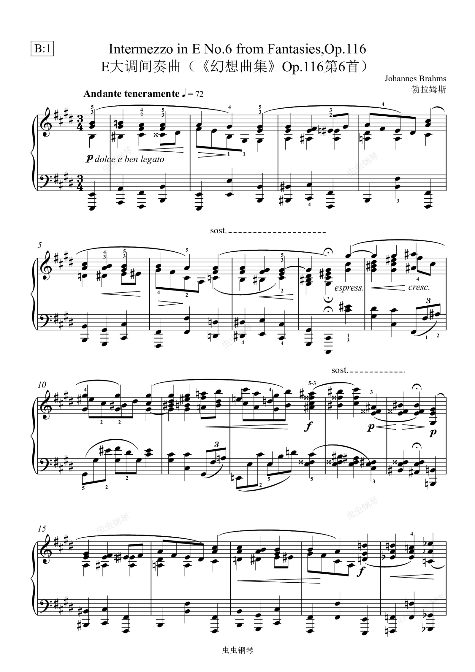 钢琴谱:4. E大调间奏曲 勃拉姆斯.sib