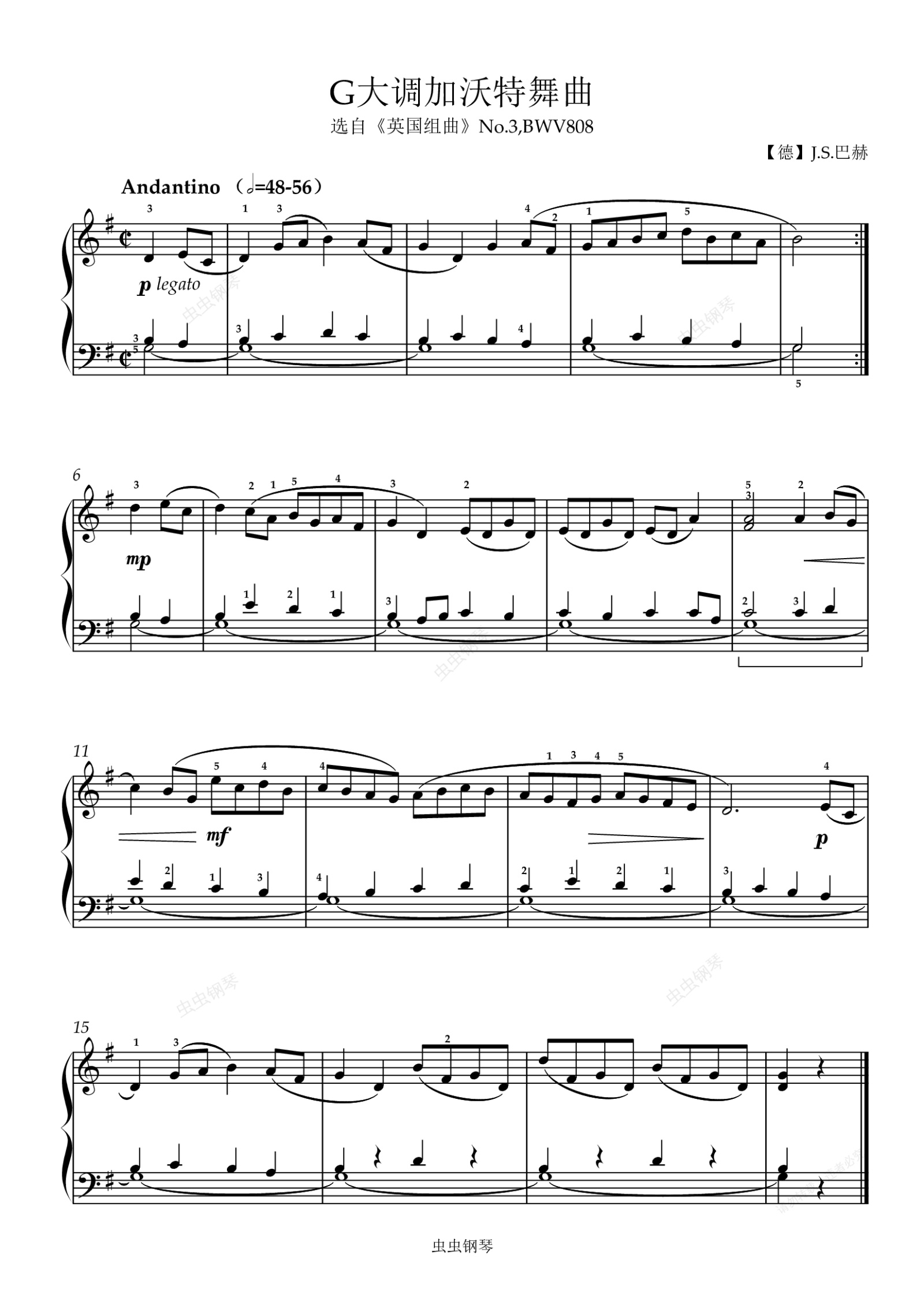 钢琴谱:4-3. G大调加沃特舞曲