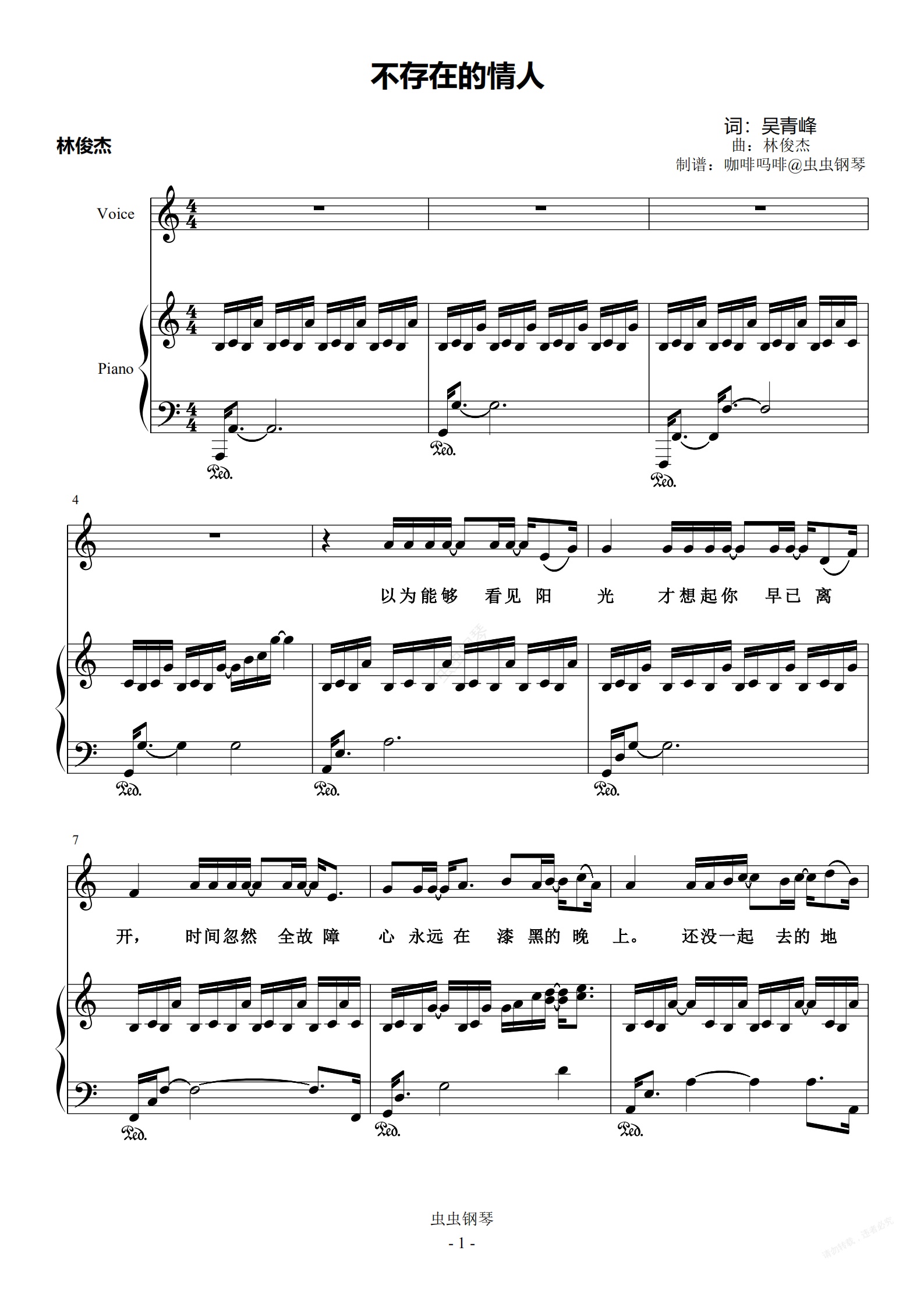 钢琴谱:不存在的情人 -林俊杰 钢琴伴奏谱