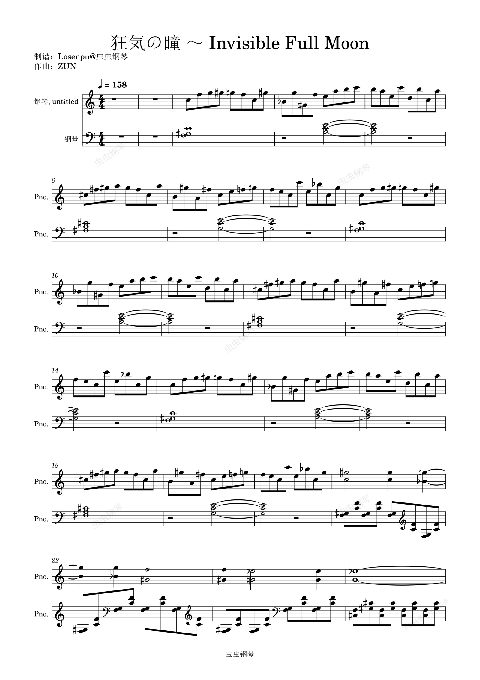 钢琴谱:狂气之瞳 ~ Invisible Full Moon