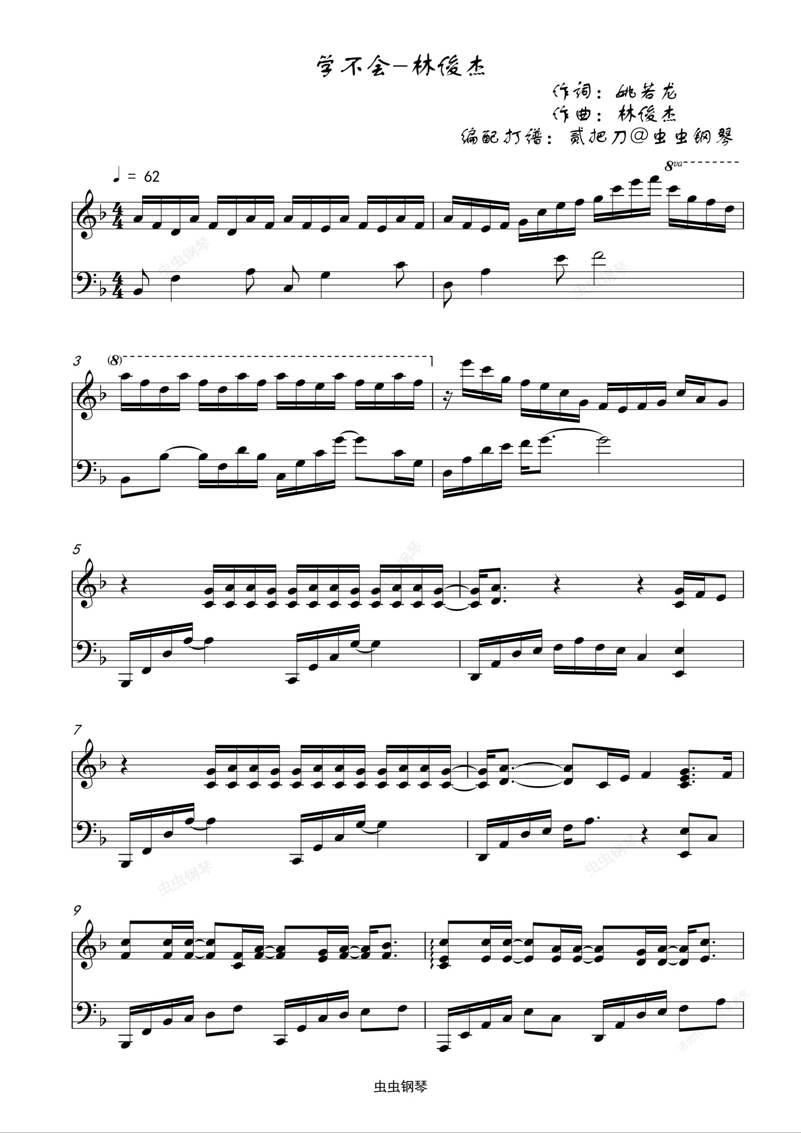 钢琴谱:学不会F调高还原独奏