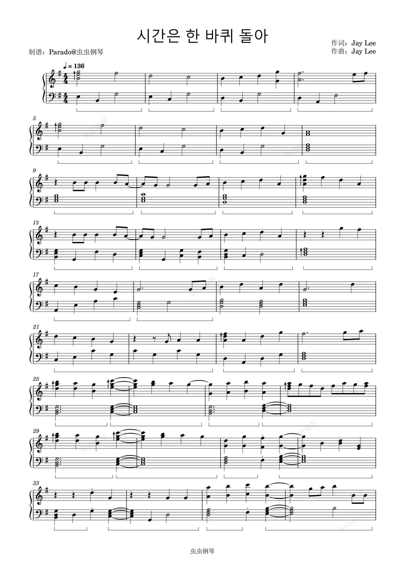 钢琴谱:As Time Goes/시간은 한 바퀴 돌아 - 진솔