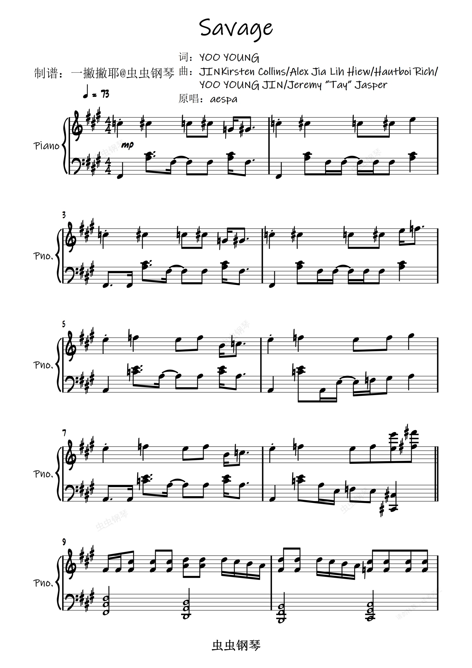 钢琴谱:Savage【完美独奏】aespa「一撇撇耶」