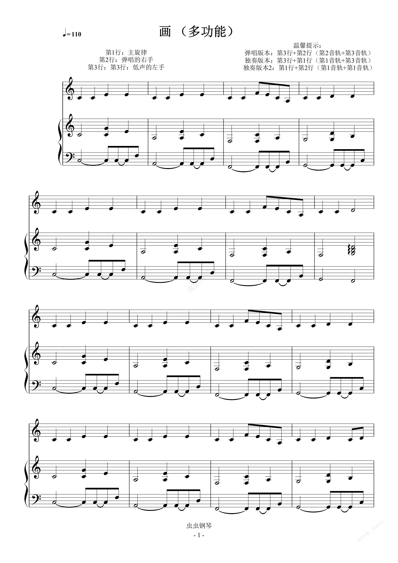 钢琴谱:画 邓紫棋 C调 弹唱+独奏 简易 (小汤)