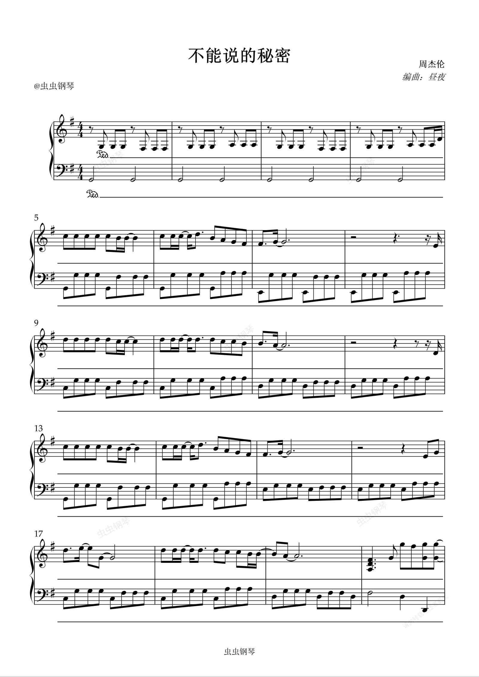 钢琴谱:不能说的秘密-昼夜演奏版