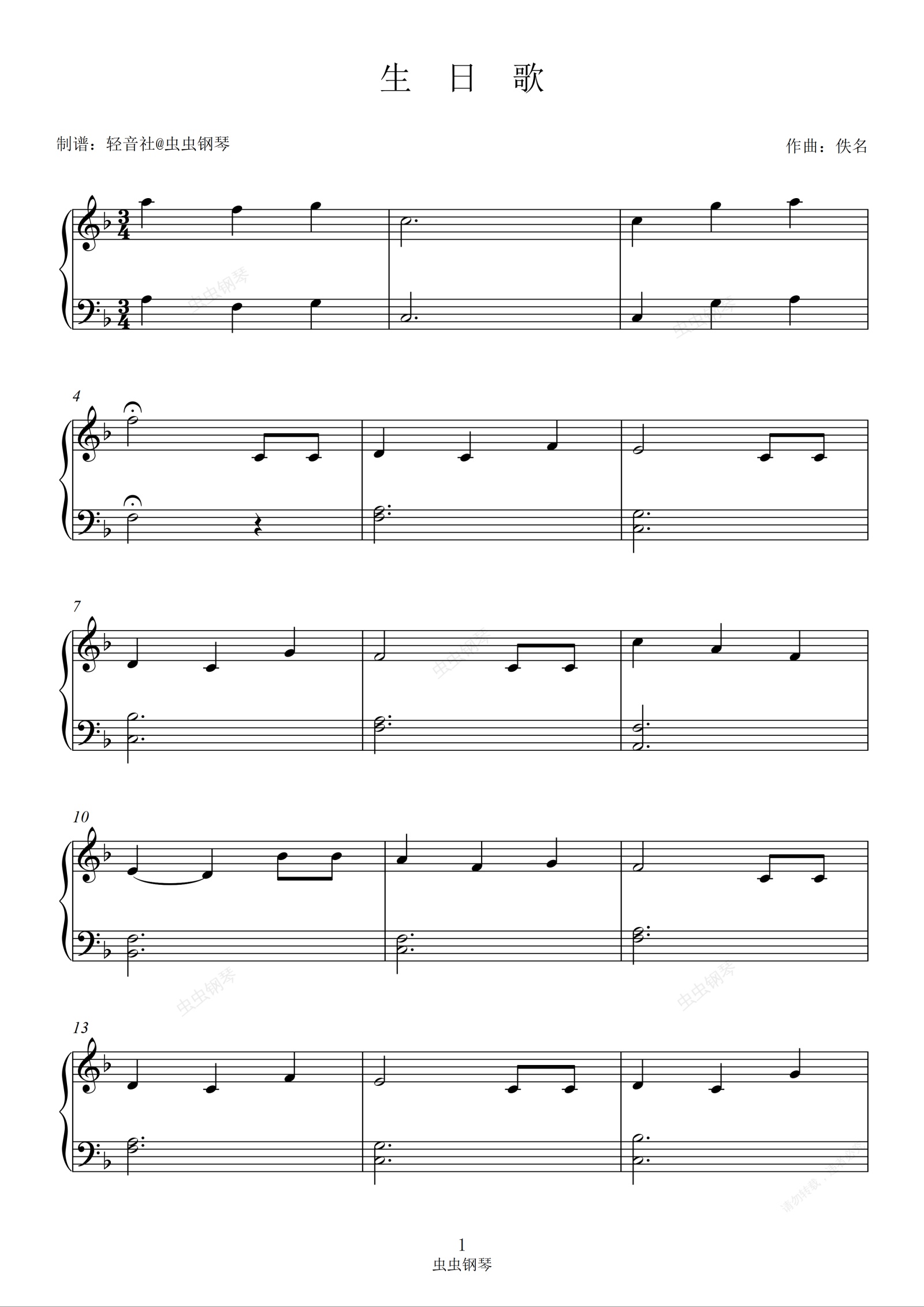 钢琴谱:《生日歌》简单易学好弹儿童初学