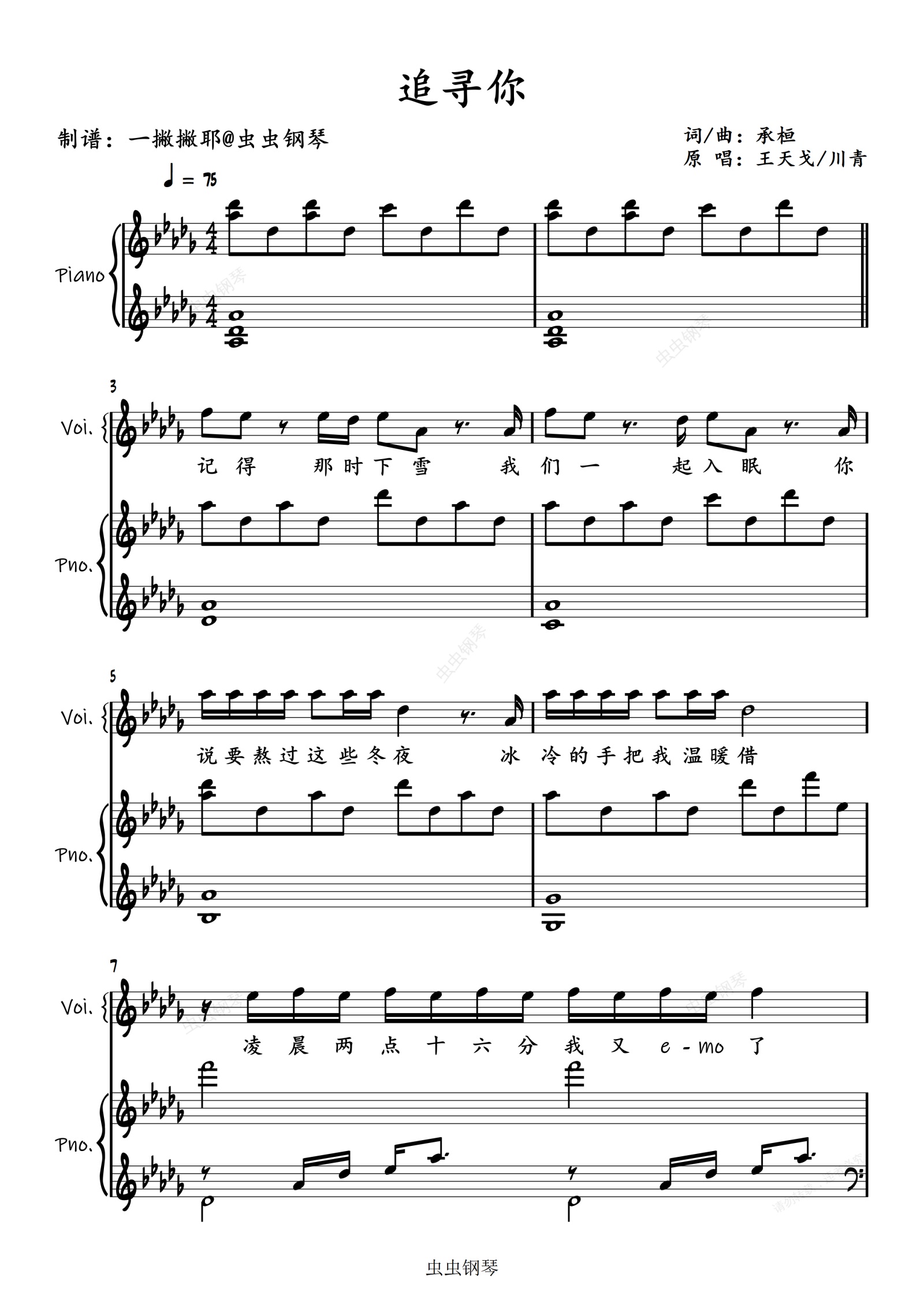 钢琴谱:追寻你【完美弹唱】王天戈/川青「一撇撇耶」