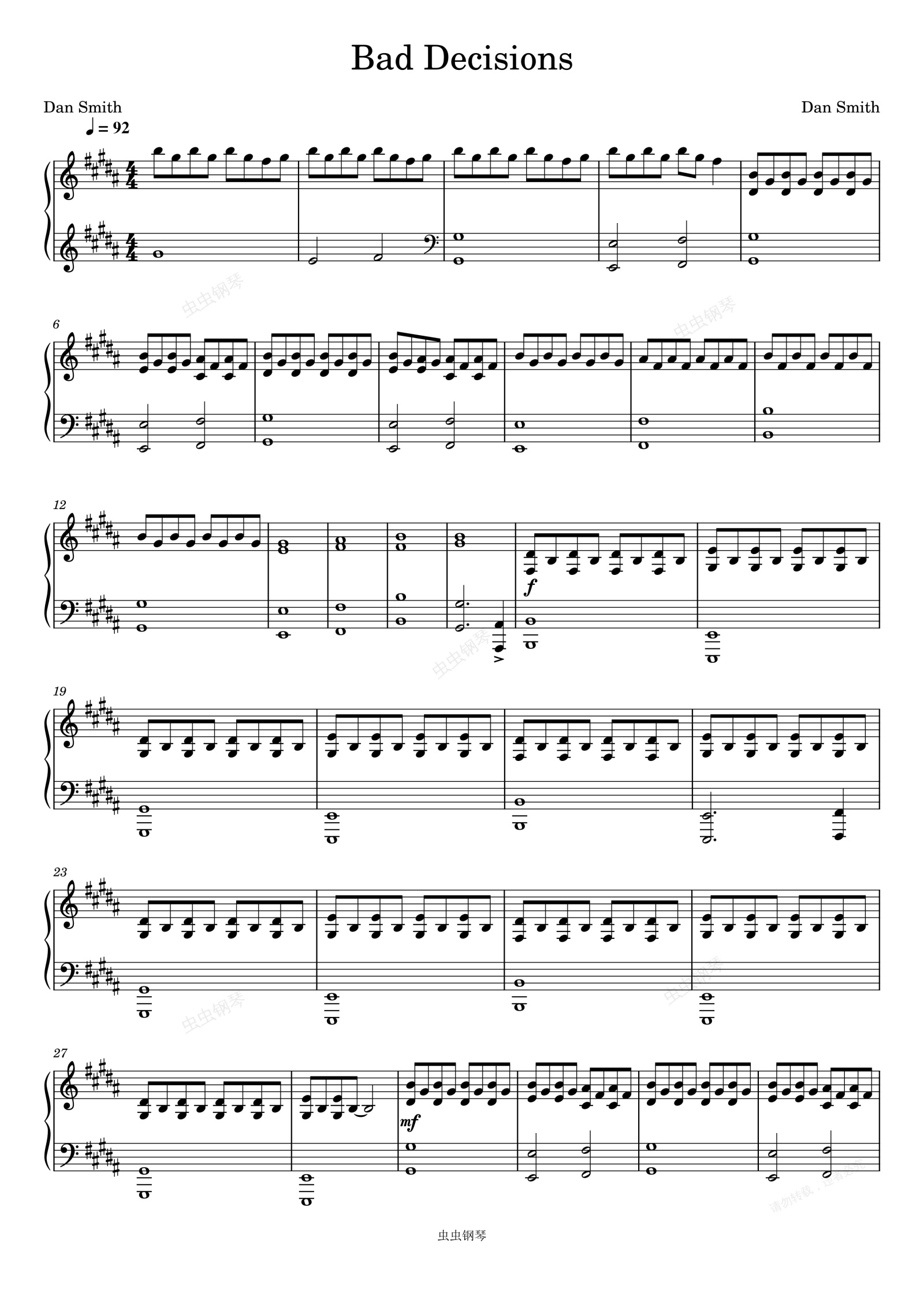 钢琴谱:Bad Decisions-Bastille
