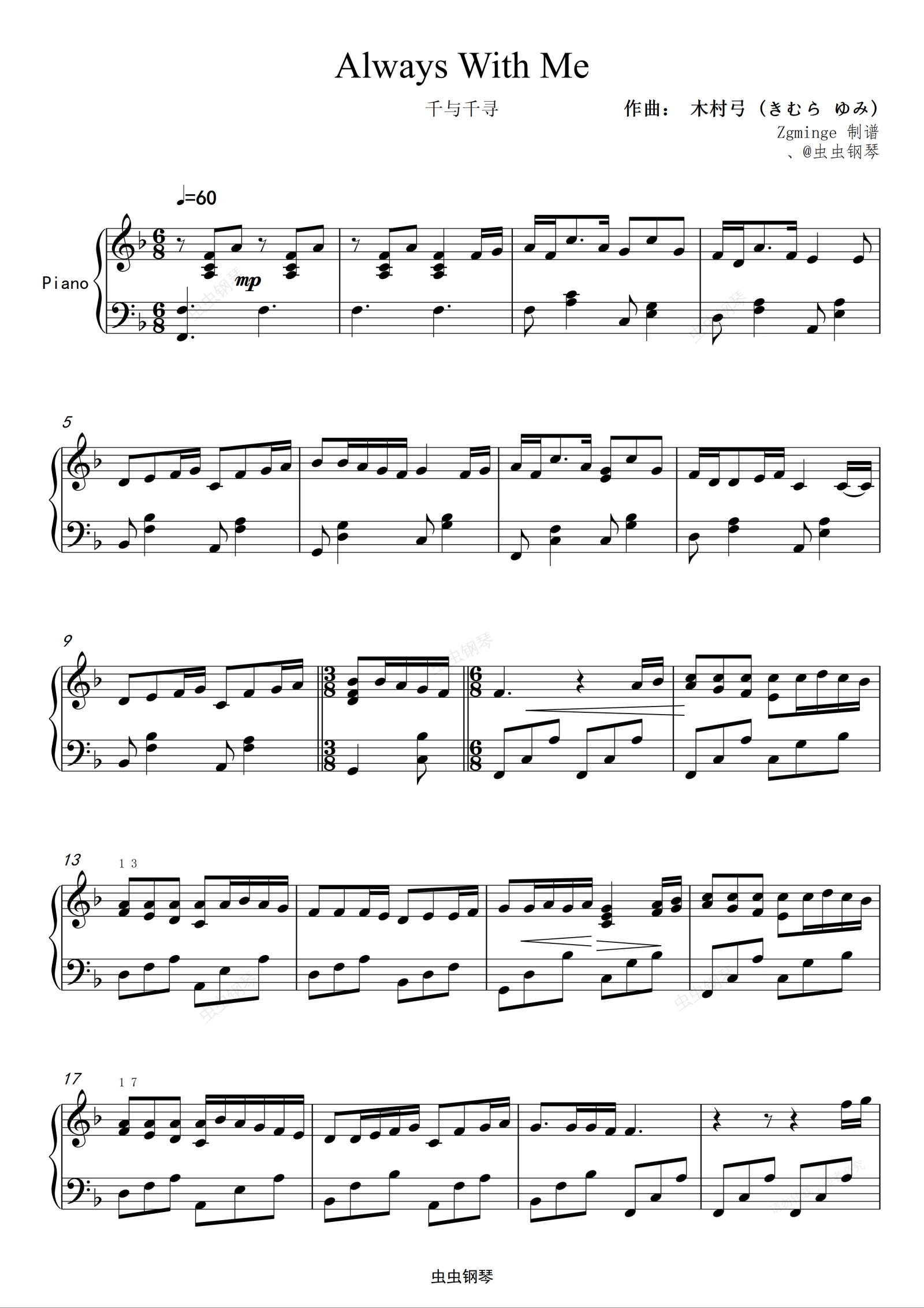 钢琴谱:いつも何度でもAlways With Me-千与千寻