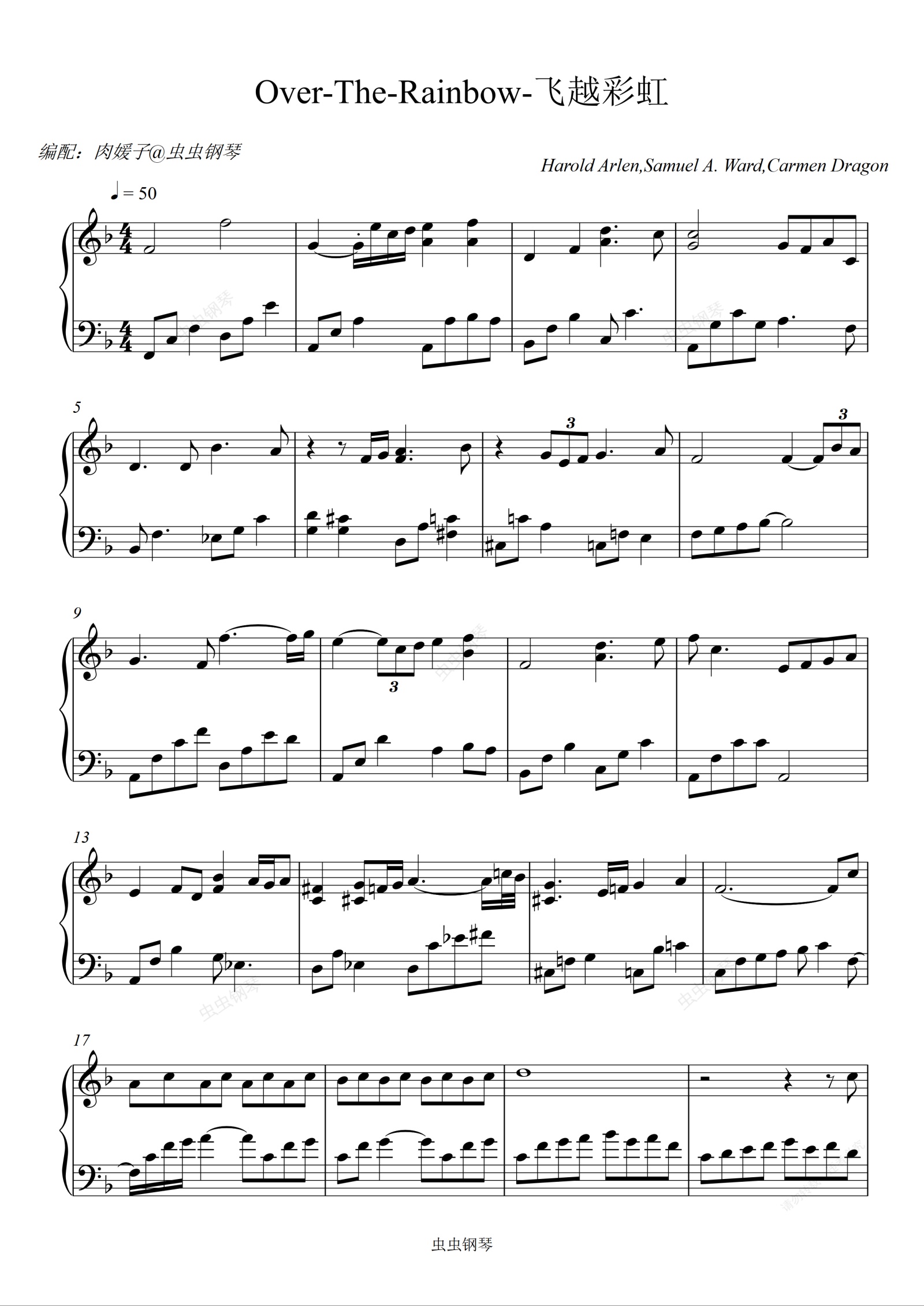 钢琴谱:Over-The-Rainbow-飞越彩虹 【情感百分百演奏版】