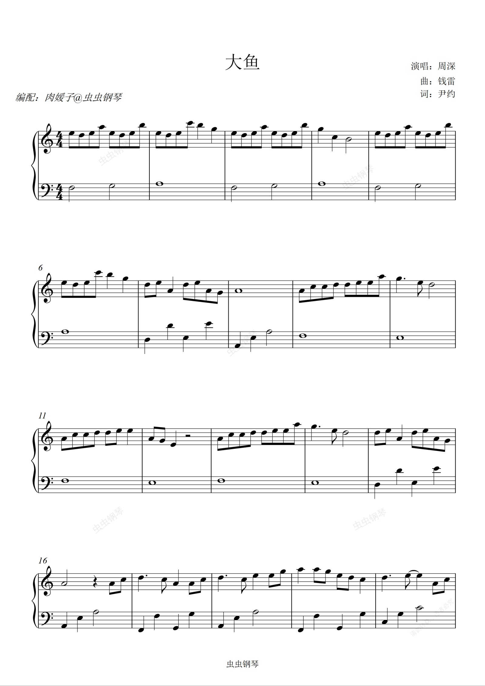 钢琴谱:大鱼- 周深 【超好听汤姆3难度】