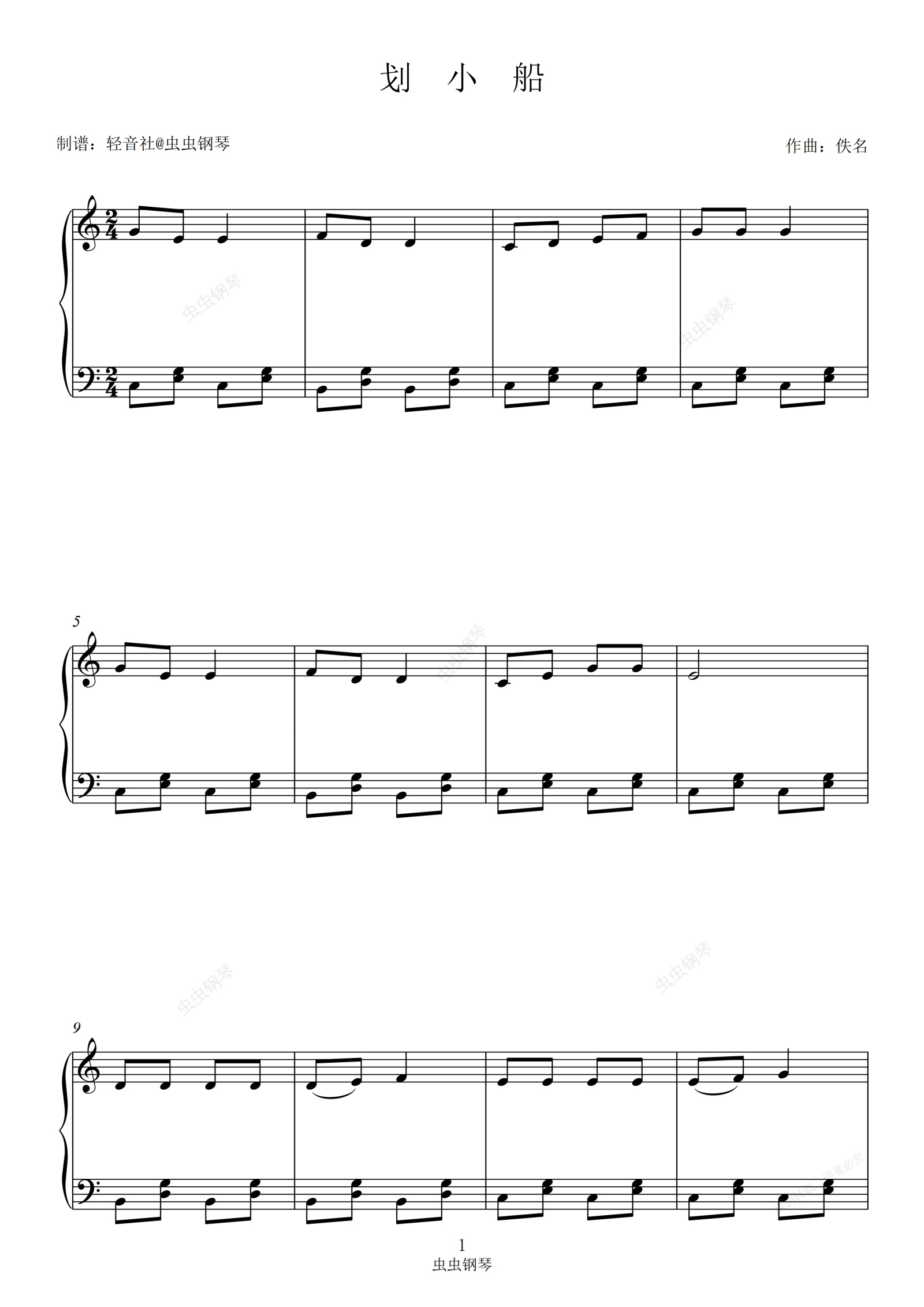 钢琴谱:《划小船》简单易弹好听儿童初学