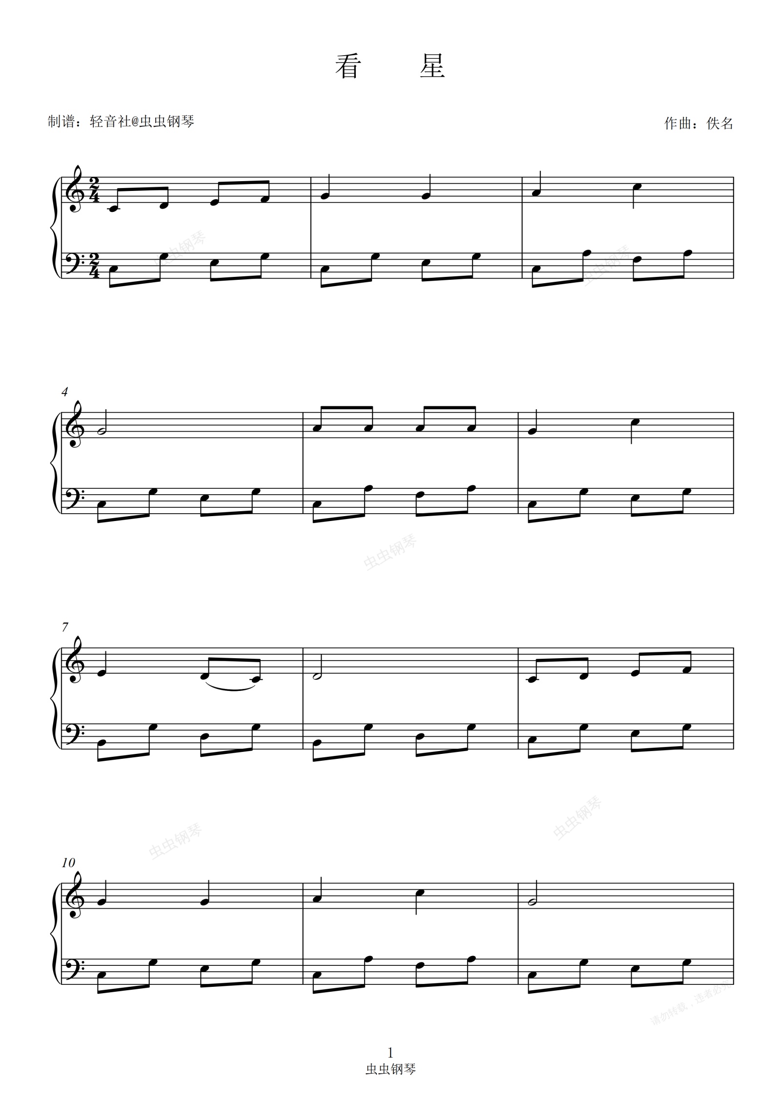 钢琴谱:《看星》简单易弹好听儿童易学