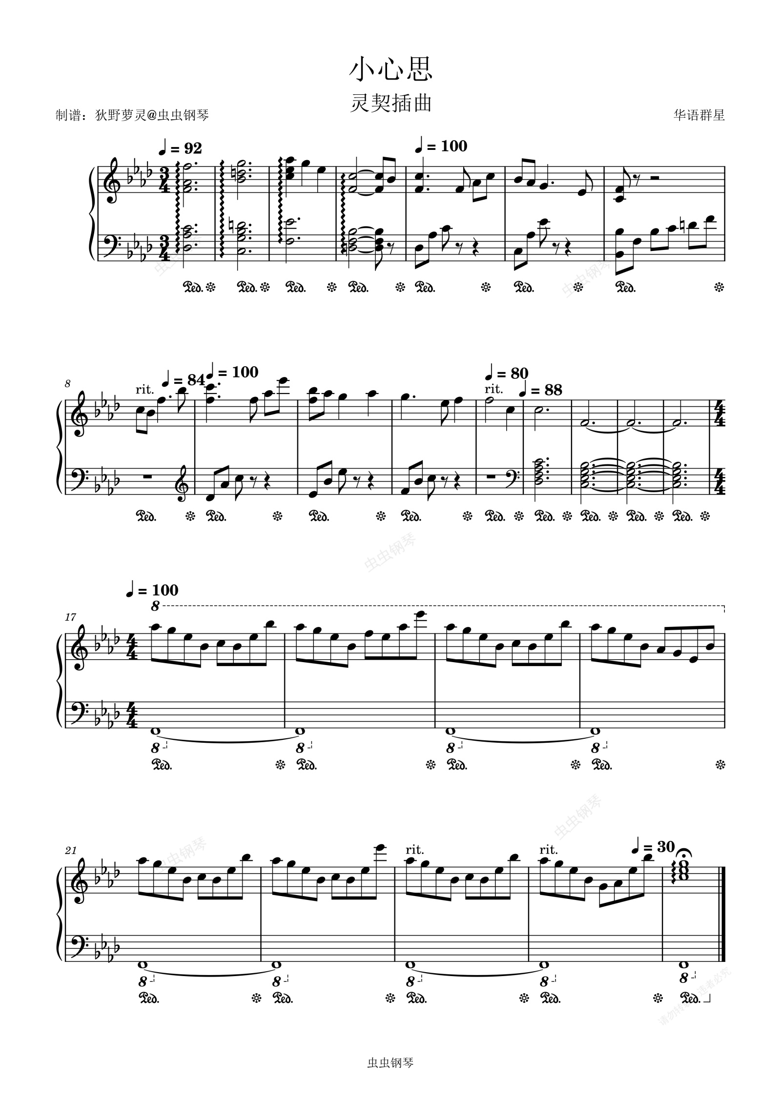 钢琴谱:小心思