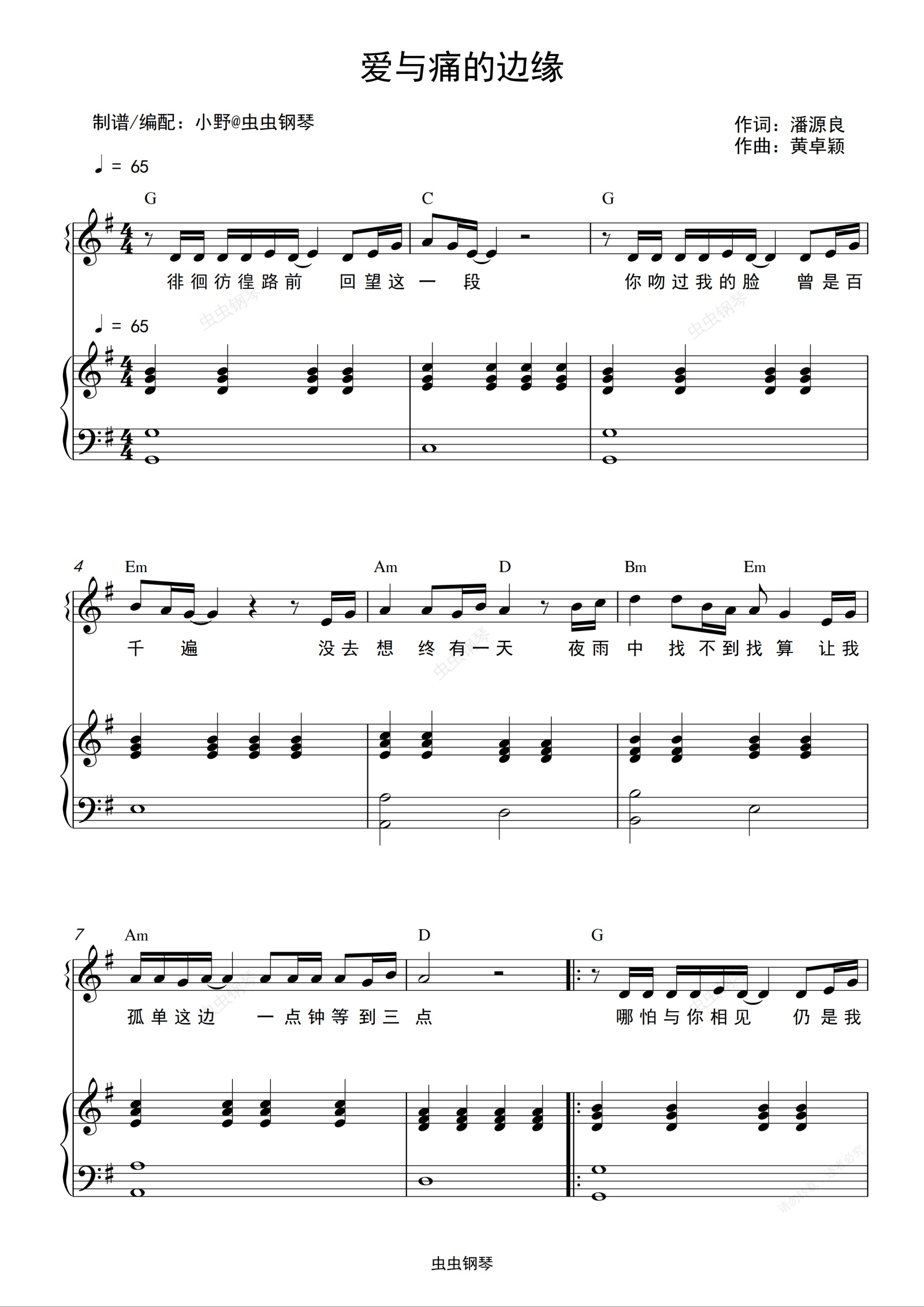 钢琴谱:爱与痛的边缘(和弦弹唱版)