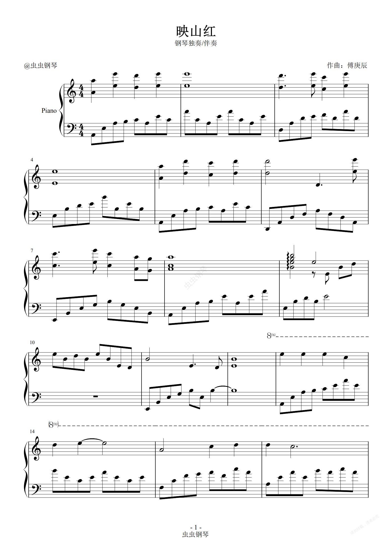 钢琴谱:映山红 a小调钢琴独奏/弹唱谱