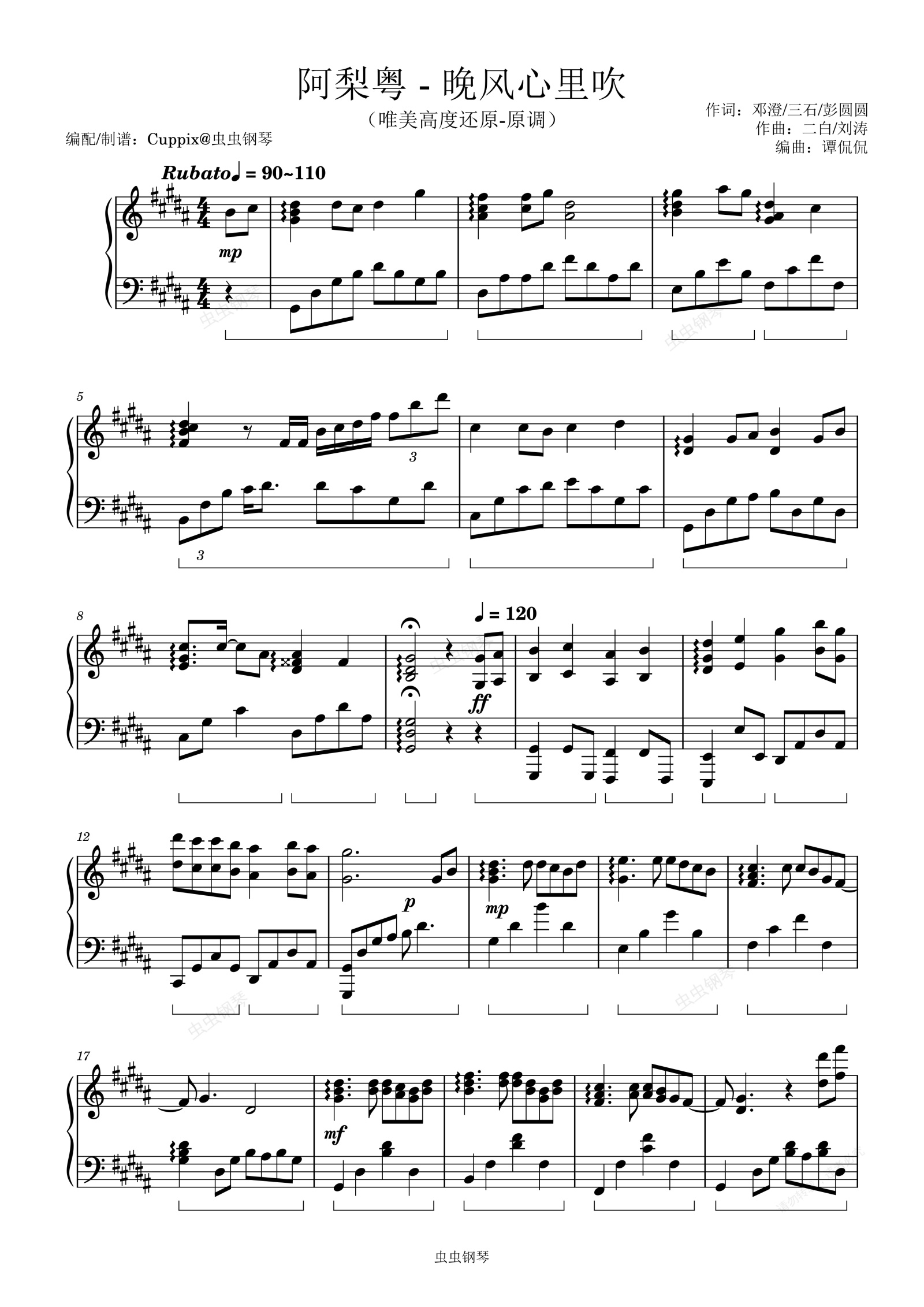 钢琴谱:阿梨粤《晚风心里吹》唯美钢琴改编-原调