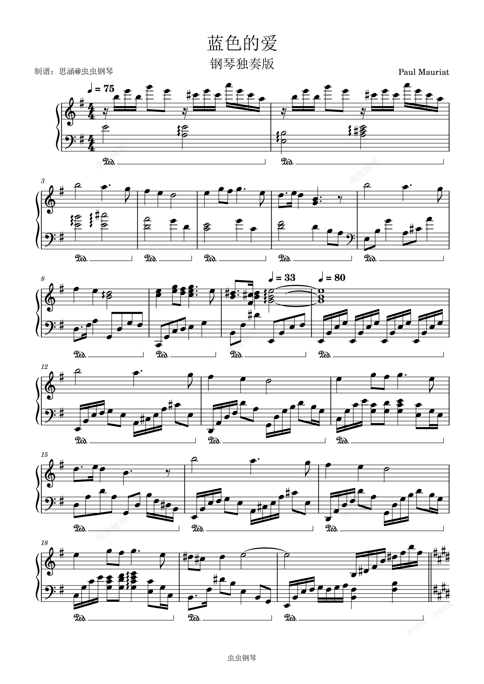 钢琴谱:蓝色的爱-保罗莫里哀版-独奏