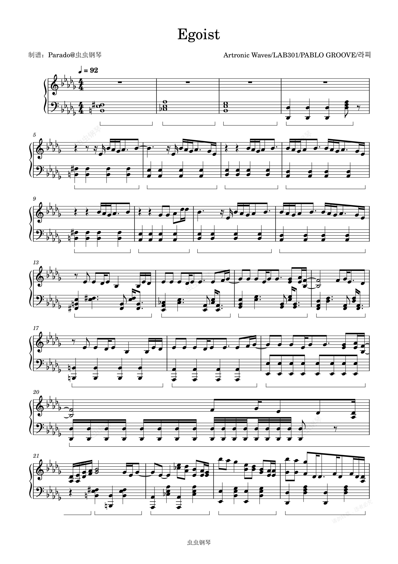 钢琴谱:【极限还原】Egoist - Olivia Hye