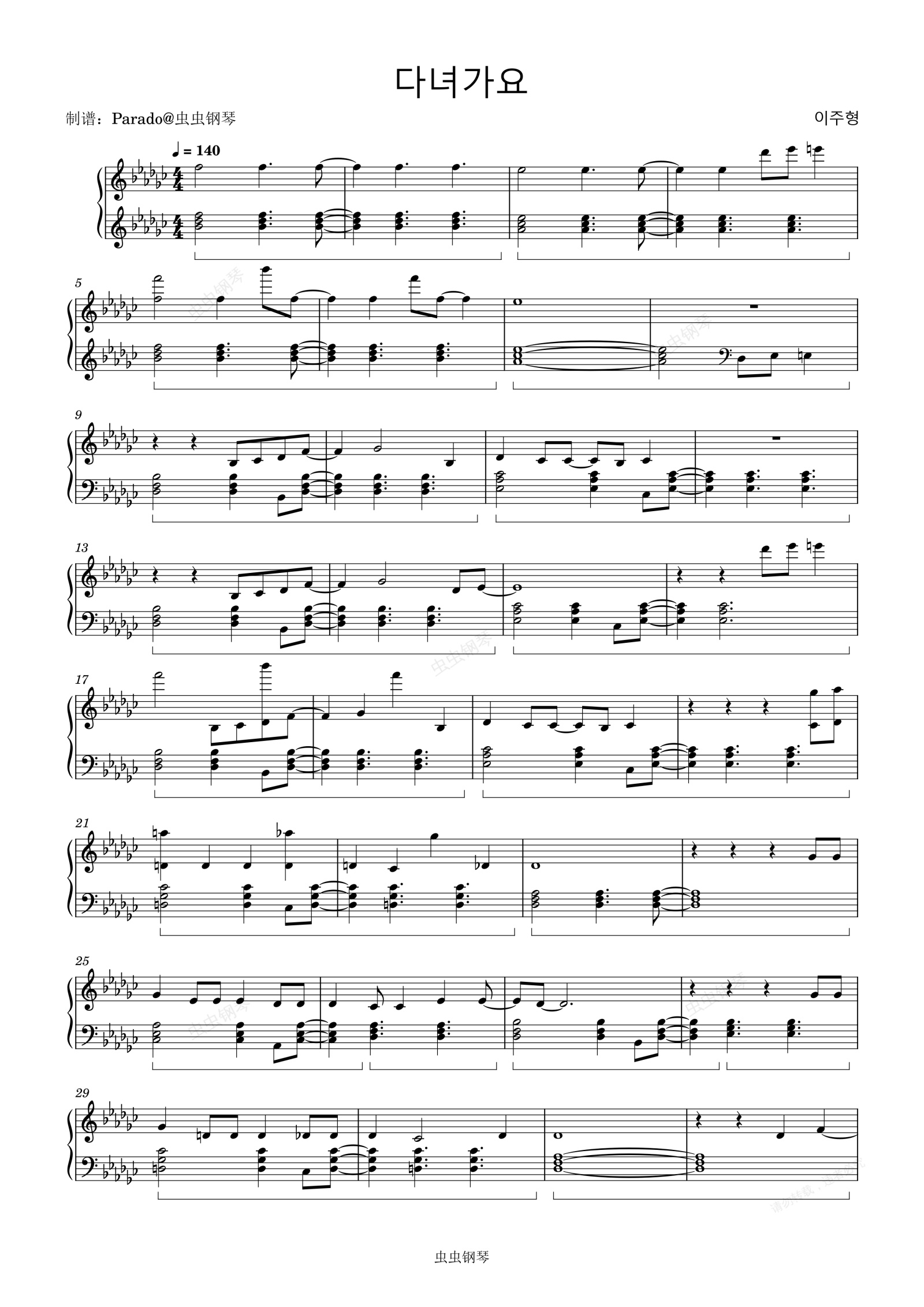 钢琴谱:【极限还原】다녀가요 - 贤真