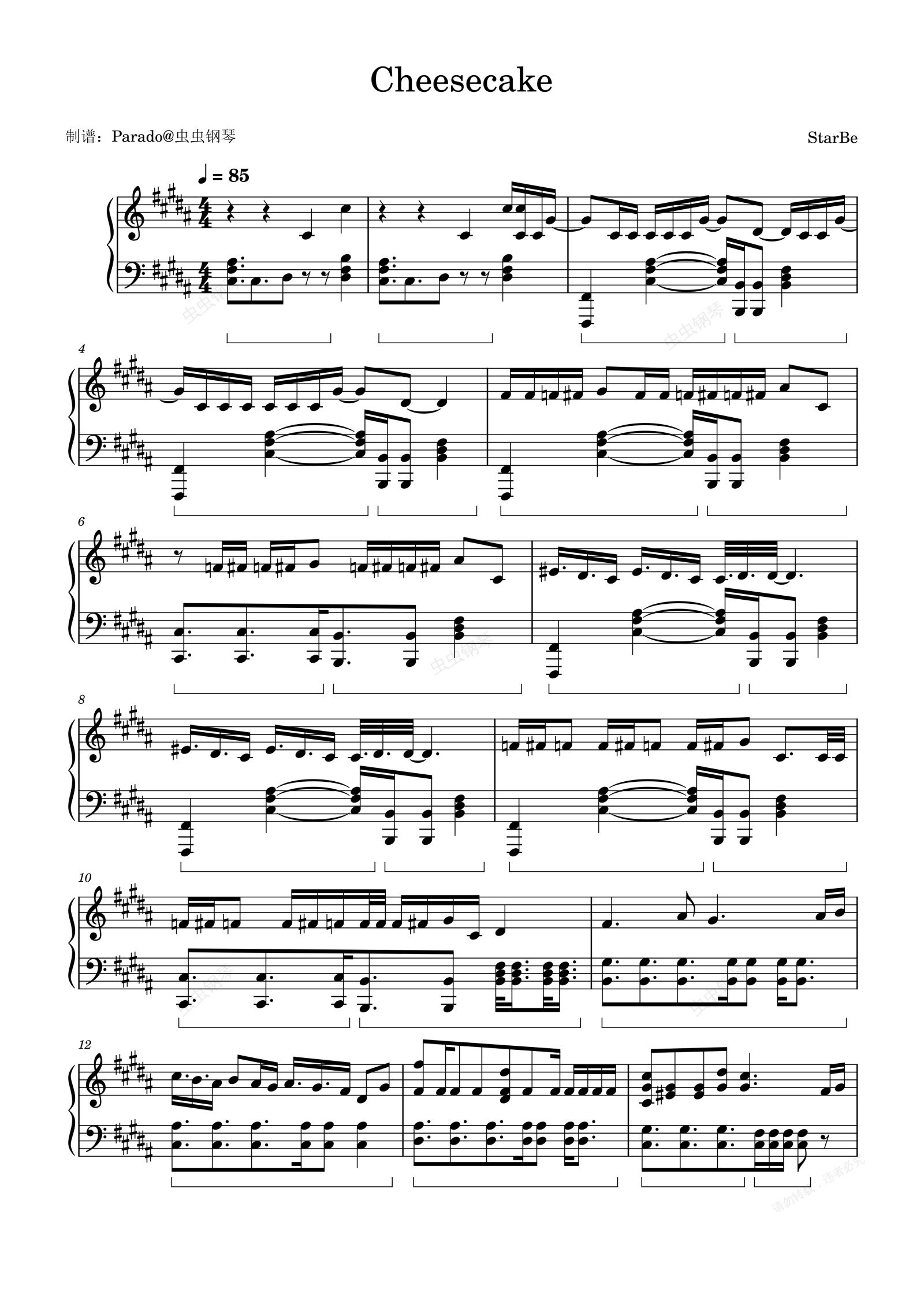 钢琴谱:【极限还原】Cheesecake - StarBe