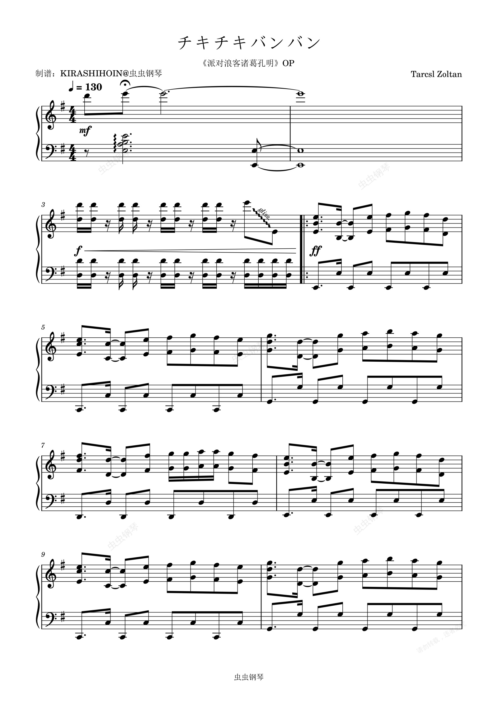 钢琴谱:チキチキバンバン(《派对浪客诸葛孔明》OP/片头曲)- QUEENDOM