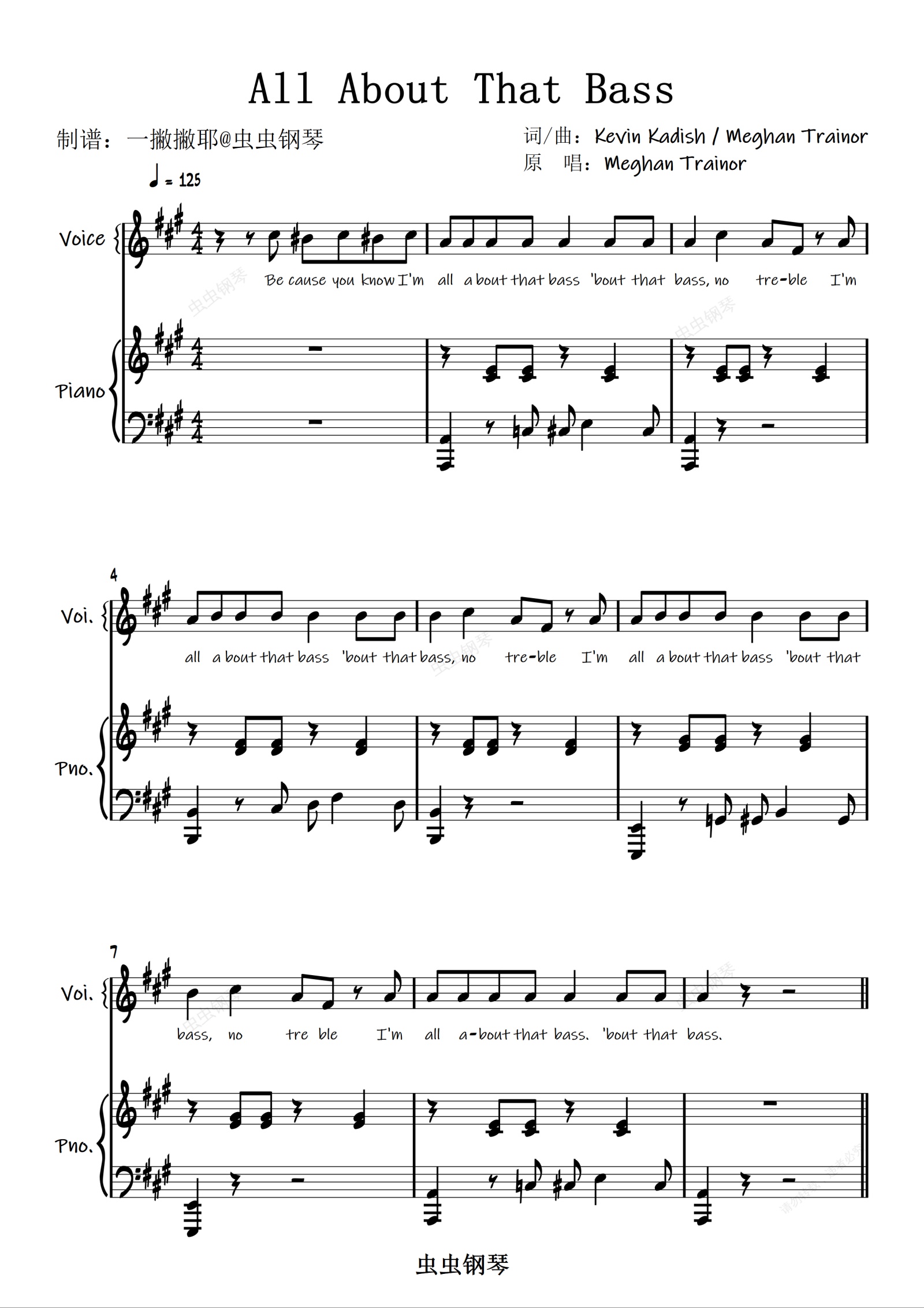 钢琴谱:All About That Bass【完美弹唱】Meghan Trainor「一撇撇耶」