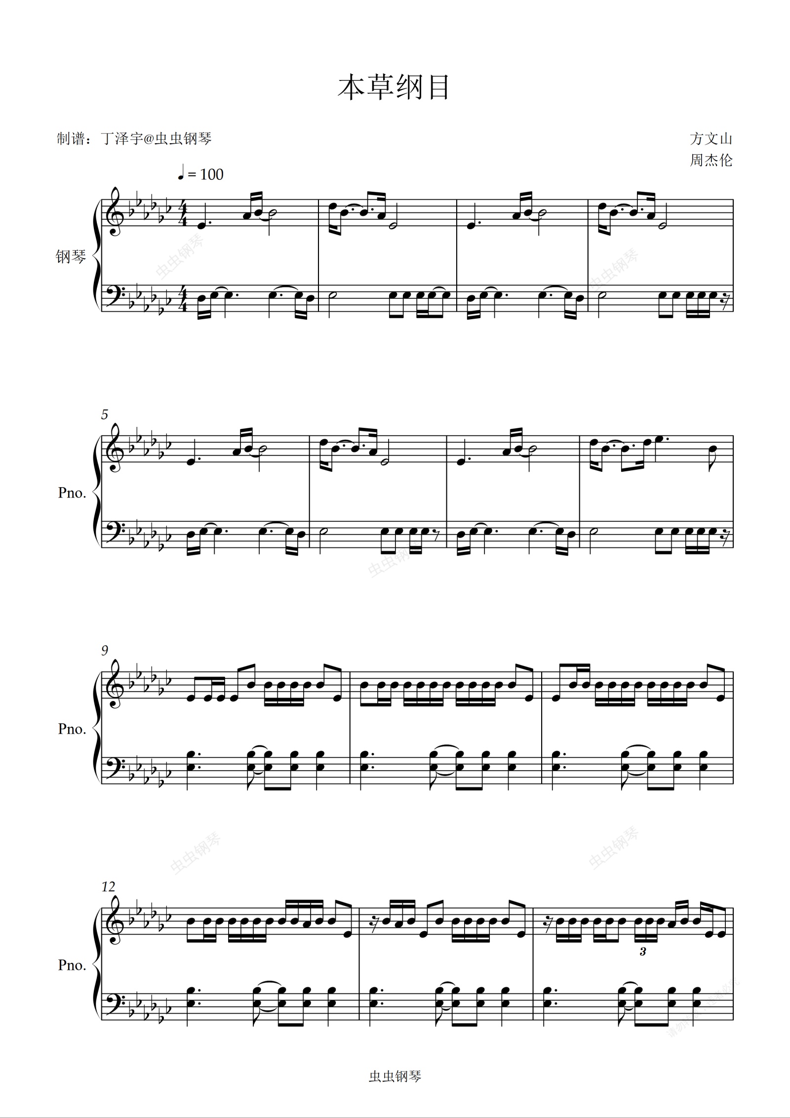 钢琴谱:本草纲目--周杰伦钢琴谱原调